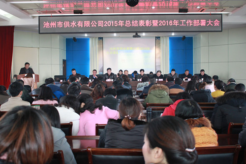 年度總結(jié)表彰暨2016年度工作部署大會(huì)的圓滿召開(kāi)是承上啟下,凝聚人心,樹(shù)立方向,明確目標(biāo)的大會(huì),是全體員工歡欣的大會(huì),全體池州供水人將在各級(jí)領(lǐng)導(dǎo)的關(guān)心支持下,在公司領(lǐng)導(dǎo)班子的帶領(lǐng)下,繼續(xù)為保障池城優(yōu)質(zhì)安全供水、全心為民務(wù)實(shí)服務(wù)作出新的貢獻(xiàn)。