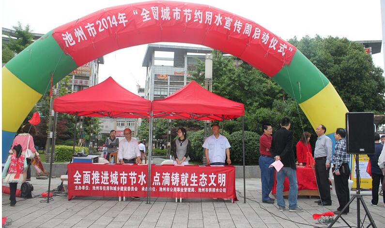 今年5月11日至5月17日是全國第23個節(jié)約用水宣傳周,本次“節(jié)約用水宣傳周”活動主題為:全面推進(jìn)城市節(jié)水,點滴鑄就生態(tài)文明。2014年5月11日,池州市在市中心地段秋浦花園廣場舉辦了第23個節(jié)約用水宣傳周的活動的啟動儀式,據(jù)悉,本次活動由池州市住房和城鄉(xiāng)建設(shè)委員會主辦,池州市公用事業(yè)管理局、池州市供排水公司承辦。省住建廳趙處長,市住建委副主任余祖平,市公用事業(yè)局局長李應(yīng)友、市供排水公司吳小平總經(jīng)理參加了本次活動。