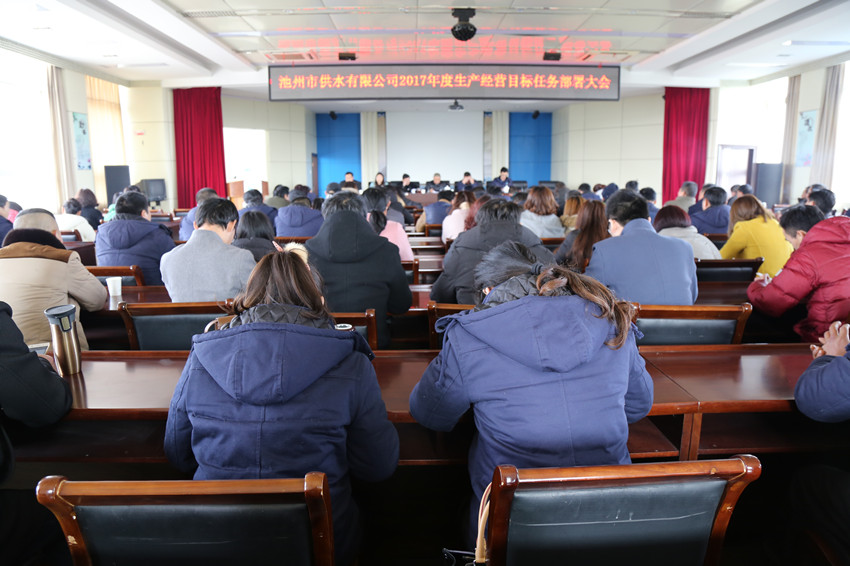 2017年2月10日,池州市供水公司在公司四樓會議室召開2017年生產(chǎn)經(jīng)營目標(biāo)任務(wù)部署大會。公司董事長鐘誠、總經(jīng)理吳小平等全體高管及公司全體員工參加會議。