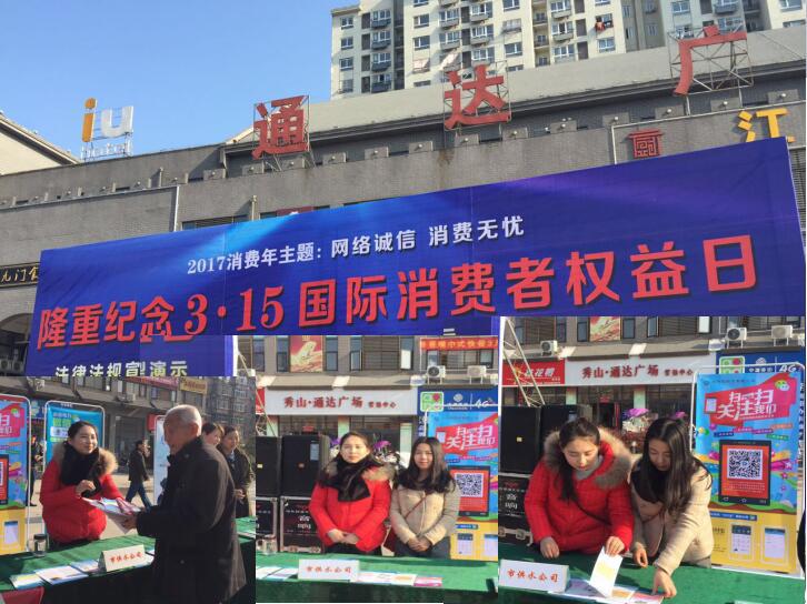 為隆重紀(jì)念“3.15”國(guó)際消費(fèi)者權(quán)益日,推動(dòng)網(wǎng)絡(luò)誠(chéng)信建設(shè),維護(hù)消費(fèi)者合法權(quán)益。3月15日上午,池州供水公司積極響應(yīng)池州市工商質(zhì)監(jiān)局、池州市消保委、貴池區(qū)市場(chǎng)監(jiān)督局、貴池區(qū)消保委等部門號(hào)召,在秀山門通達(dá)廣場(chǎng)開展以“網(wǎng)絡(luò)誠(chéng)信、消費(fèi)無憂”主題宣傳、咨詢、服務(wù)活動(dòng)。