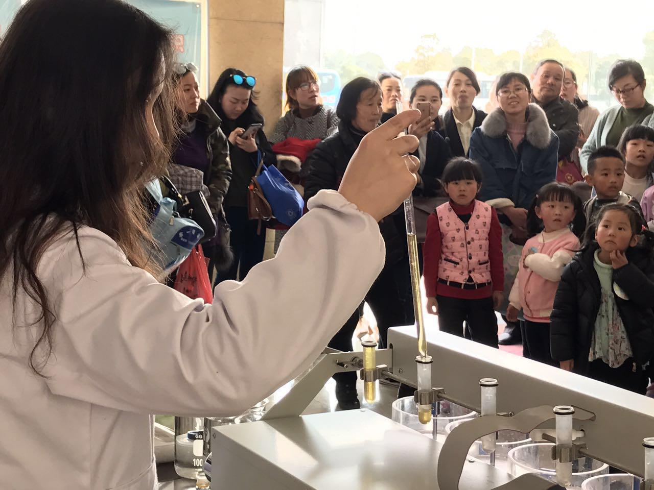 實地參觀結(jié)束之后,孩子們再次回到綜合樓。供水公司的工作人員就水質(zhì)的幾項重要指標(biāo)——渾濁度、余氯、肉眼可見物等向孩子們做了細(xì)心的講解,并邀請孩子們親子動手進(jìn)行了不同水樣的渾濁度及余氯測試。