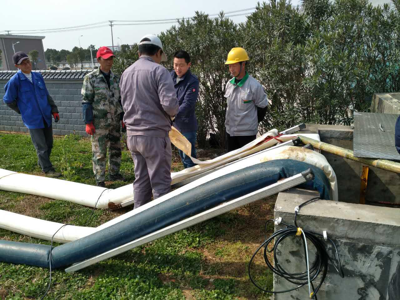 為確保安全生產(chǎn)、保證水質(zhì)達(dá)標(biāo),相關(guān)規(guī)定指出,清水池應(yīng)該每1~2年清洗、檢修一次,當(dāng)水質(zhì)良好時(shí)可適當(dāng)延長(zhǎng),但不得超過(guò)5年。清檢的主要內(nèi)容有:清除清水池底泥沙、消毒、池壁及池內(nèi)隔墻墻體狀況檢查、維修等。至2017年3月,江口水廠清水池已經(jīng)達(dá)到清洗限期,3月13日,水廠領(lǐng)導(dǎo)組織開(kāi)展了清水池的清洗工作。 為保障清洗期間的正常供水,1、2號(hào)清水池應(yīng)該分開(kāi)清洗。每個(gè)清水池都應(yīng)反復(fù)沖洗數(shù)次,直至泥沙排盡,方可進(jìn)行消毒工作。完成清洗后由水廠化驗(yàn)室工作人員對(duì)池內(nèi)水進(jìn)行抽樣檢測(cè),確保水質(zhì)達(dá)標(biāo)后,清水池方可投入使用。