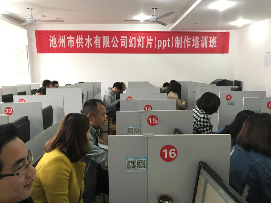|     為適應(yīng)現(xiàn)化化辦公需求,4月8日,池州市供水有限公司在池陽(yáng)職業(yè)培訓(xùn)學(xué)校舉辦了為期一天的PPT制作培訓(xùn),公司各部門(mén)30名職工參加培訓(xùn)。