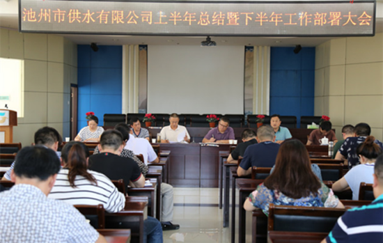 |   2017年7月14日下午,池州市供水有限公司上半年總結(jié)暨下半年工作部署大會在公司四樓會議室召開,公司董事長鐘誠、總經(jīng)理吳小平等全體高管及公司全體員工參加會議。會議由寧加寶副總經(jīng)理主持。