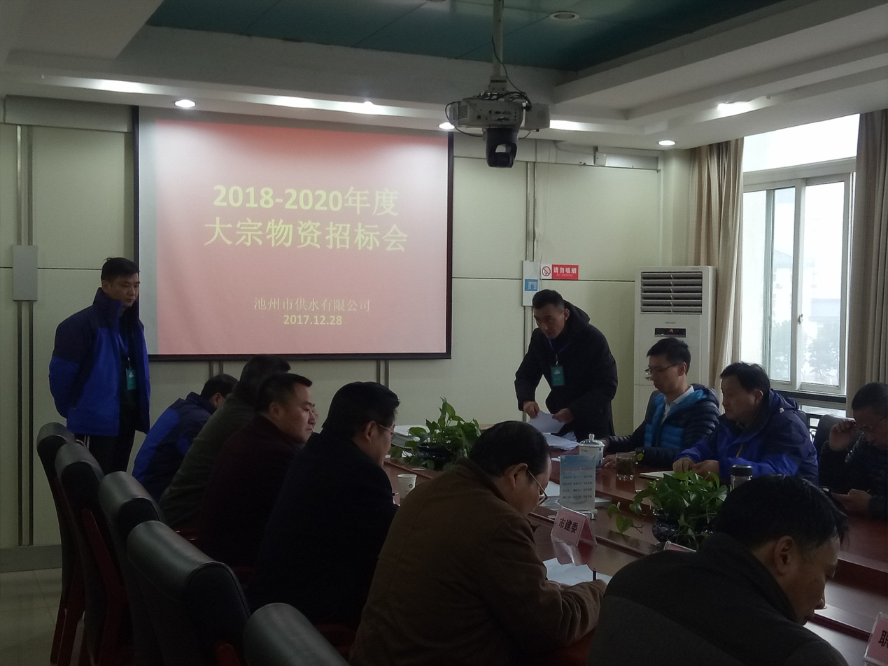 為加強公司物資采購管理工作,進一步規(guī)范公司常用物資的采購行為,降低采購成本,加強物資質(zhì)量的管理。12月28日,池州市供水有限公司在三樓會議室組織召開了2018-2020年度大宗物資集中采購招標(biāo)會議。公司招標(biāo)投標(biāo)管理委員會成員、職工代表及使用部門代表出席了會議,市國資委、住建委、公共事業(yè)局李應(yīng)友局長對本次招標(biāo)進行了現(xiàn)場監(jiān)督。