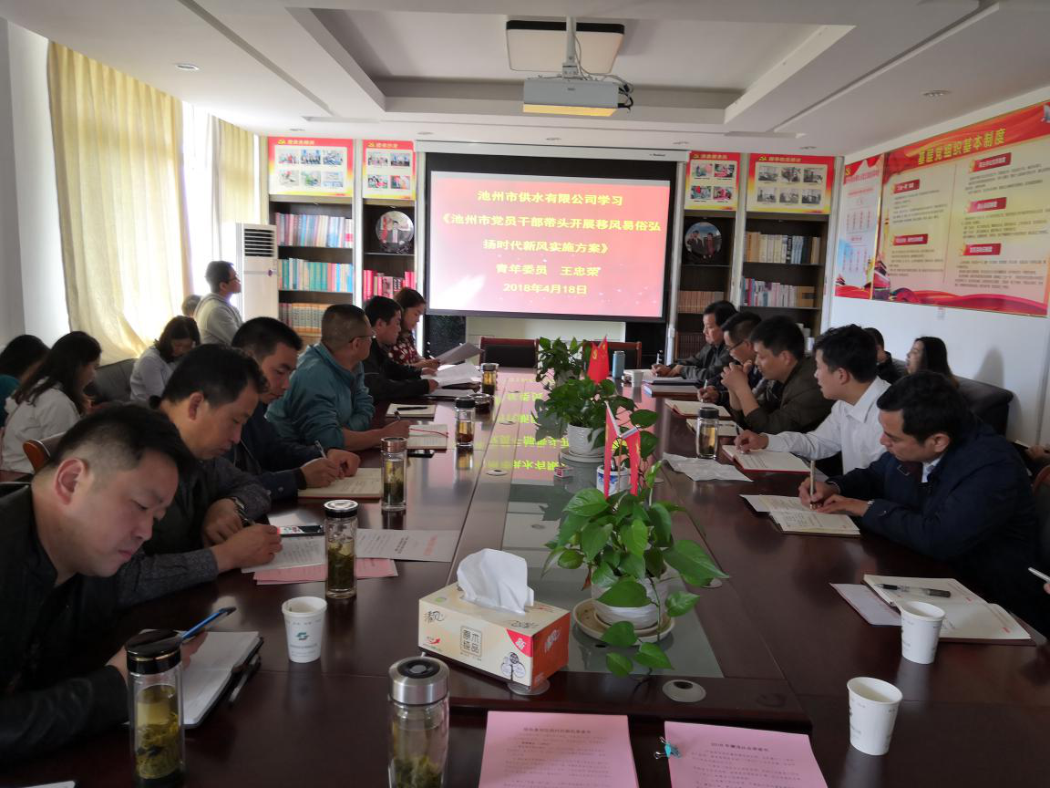 2018年4月18日,池州市供水有限公司黨支部組織學(xué)習(xí)《中國共產(chǎn)黨廉潔自律準(zhǔn)則》、《中國共產(chǎn)黨紀(jì)律處分條例》、《池州市黨員干部帶頭開展移風(fēng)易俗弘揚(yáng)時代新風(fēng)實施方案》,全體黨員及入黨積極分子參加了本次學(xué)習(xí)。
