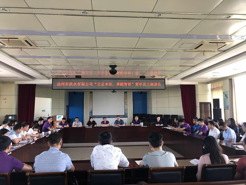 2018年5月4日,為迎接“五四”青年節(jié)的到來(lái),弘揚(yáng)“五四”精神,調(diào)動(dòng)廣大青年員工的工作熱情和積極性,池州市供水有限公司舉辦了以“立足本職,奉獻(xiàn)青春”為主題的青年員工座談會(huì)。公司全體高管、35歲以下全體青年員工、各部門負(fù)責(zé)人參加座談會(huì)。