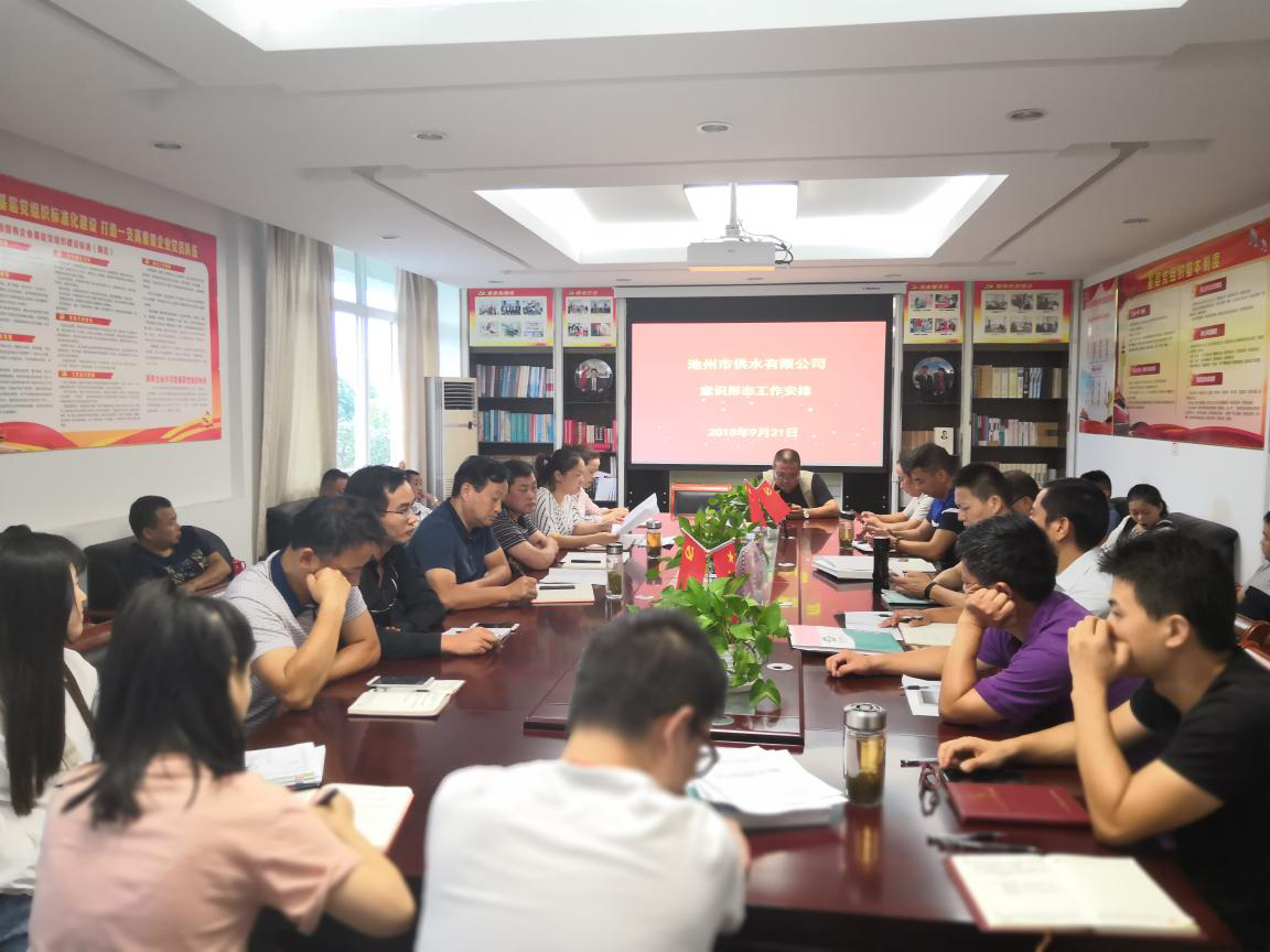 | 為進一步加強和改進意識形態(tài)工作,落實黨要管黨意識形態(tài)原則,明確領導班子、黨員干部的意識形態(tài)工作責任,2018年9月21日,池州市供水有限公司召開意識形態(tài)工作部署會。
