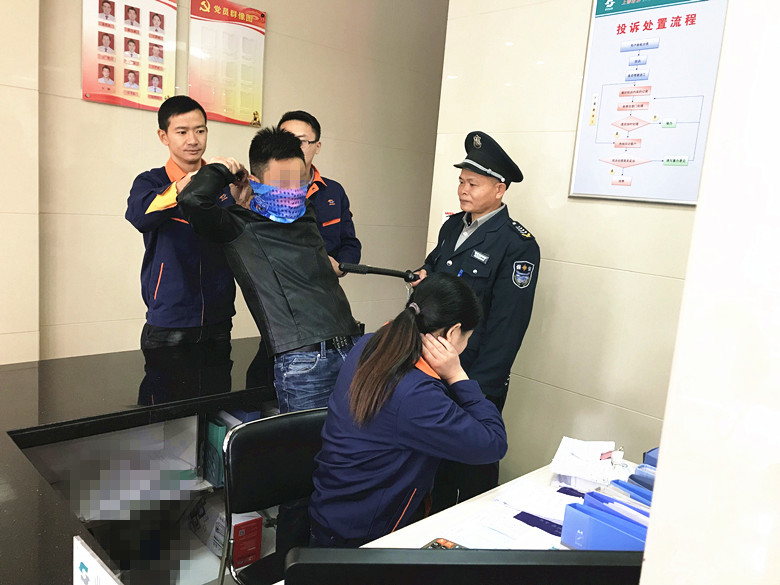 10月19日,池州市供水有限公司客服中心營業(yè)大廳里突然闖入兩名蒙面“劫匪”,其中黑衣蒙面“劫匪”直接沖到1號窗口持刀挾持柜員要求交出現(xiàn)金,另一名紅衣蒙面“劫匪”把事先準(zhǔn)備好的包扔到大廳收費(fèi)處,指使收費(fèi)員立即將現(xiàn)金裝進(jìn)黑包里。兩名“劫匪”面目猙獰,情緒激動,人質(zhì)隨時都有生命危險!收費(fèi)員以保險柜鑰匙在主任那為由來拖延時間,中心主任聽到動靜后迅速按下報(bào)警器,從鈔箱中將面額較小的現(xiàn)金取出,裝入袋中時假裝緊張故意將現(xiàn)金灑落在地,拖延時間,等待救援。與此同時,5號窗口柜員悄悄地躲到柜臺下用手機(jī)向110和公司領(lǐng)導(dǎo)報(bào)警,值班保安人員迅速有序的疏散中心大廳的其他無關(guān)人員;接到報(bào)警后的公司安保隊(duì)員突然出擊,人質(zhì)成功解救,兩名“劫匪”都被成功制服,扭送到公安部門。