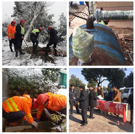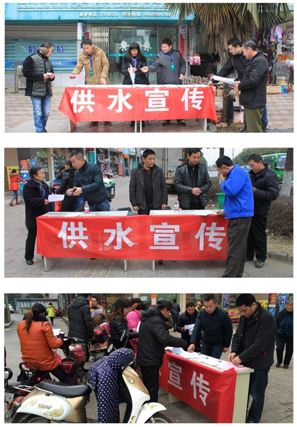 公司青年文明號、巾幗文明崗等志愿者每年都會奔赴石臺的邊遠山區(qū),給那里的留守兒童、孤寡老人和貧病婦女送去愛心捐款和慰問。 聯(lián)系路段、共建社區(qū)。根據(jù)市文明辦及住建委工委要求,公司志愿者一直活躍在全國文明創(chuàng)建城市的各條路段,“清白行動”、“愛綠護綠”、“凈城慢跑”、“文明交通”“周末志愿活動”等活動開展得如火如荼。今年更是接受了定點路段定期值守的任務(wù)。清泉志愿者們統(tǒng)一著裝、不怕苦不怕累,不管寒熱酷暑,都堅持在為池城的文明創(chuàng)建工作添加屬于供水人的風(fēng)采。   公司一直與東湖社區(qū)、古舜社區(qū)、平天湖社區(qū)是友好共建單位。每年春節(jié)公司會組織慰問社區(qū)貧困家庭、優(yōu)撫對象,開展志愿者送春聯(lián)進社區(qū)、免費維修進社區(qū)等活動,在水廠開放日,會優(yōu)先考慮共建社區(qū)居民,邀請他們走進水廠近距離見證生產(chǎn)水的工藝流程。   極端天氣,本色盡顯。2016年1月,池州市遭遇了幾十年未遇的超級寒潮。連續(xù)多日極寒天氣、最低氣溫逼近零下15度(池州氣溫歷史極值)的世紀(jì)寒潮,造成我市城區(qū)供水設(shè)施大面積受損,水管大面積爆裂,水表短時間集中爆表,眾多居民家中無水。公司立即實施以清泉志愿服務(wù)隊為核心的“水寶寶”應(yīng)急供水服務(wù)項目,組織青年團員、黨員干部、業(yè)務(wù)骨干等立即行動,全力搶修、全心服務(wù),供水系統(tǒng)始終處于安全運行的狀態(tài)。針對一些小區(qū)供水設(shè)施受凍嚴(yán)重,隊員們夜以繼日全力以赴保供水暢通,經(jīng)過10余天的奮戰(zhàn),公司累計維修137余處供水主干管網(wǎng),維修1612處用戶內(nèi)管,更換普通水表5388只,更換智能水表1500只,接聽11000個報修電話,出動搶修人員17274人次,出動搶修車輛8637次。隊員們在大災(zāi)面前,挺身而出、不計報酬、全身心的投入搶險,沒有一人退縮,沒有一人講條件,大家戰(zhàn)嚴(yán)寒,斗冰雪,星夜搶修,得到了政府主管部門、股東方以及廣大市民的高度肯定。    2017年1月21日開始,池州市迎來了低溫暴雪天氣,持續(xù)的低溫暴雪導(dǎo)致地表立管、水箱及水表等結(jié)冰、破裂,嚴(yán)重影響供水安全。公司迅速啟動供水防冰凍應(yīng)急預(yù)案,搶險隊伍24小時待命,隨時應(yīng)對管道冰破、爆裂等事件,為能做好水表設(shè)施快速搶修維修工作,水寶寶應(yīng)急供水服務(wù)隊還組成八個水表設(shè)施維修小組。   2018年1月24日到31日,池州市遭遇了持續(xù)數(shù)日的冰雪“圍城”,極端惡劣的天氣不斷考驗著城市血脈的安全以及守護者的應(yīng)對能力,城市部分供水管道結(jié)冰,給群眾生產(chǎn)生活用水帶來影響。水寶寶應(yīng)急供水保障人員再次24小時待命,為群眾搶修、更換破損管道和水表,并加大供水設(shè)施巡護力度,池州城的“城市血脈”再次經(jīng)受了嚴(yán)竣的考驗。持續(xù)暴雪期間,每天參與搶險值班人員達100余人次,更換水表100余只,搶修、維修213處(含用戶內(nèi)管)。冰天雪地中,他們精心守護城市血脈的同時,也在這個寒冬留下了屬于池州供水人的最美鏡頭。