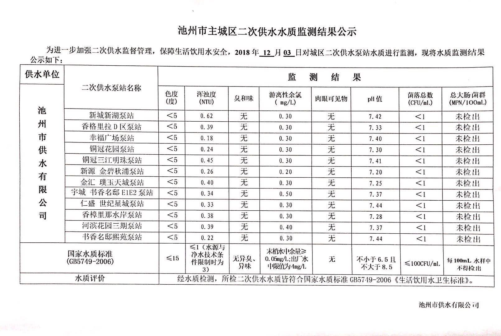 | 池州市主城區(qū)二次供水水質監(jiān)測結果公示(2018.12.03) | |