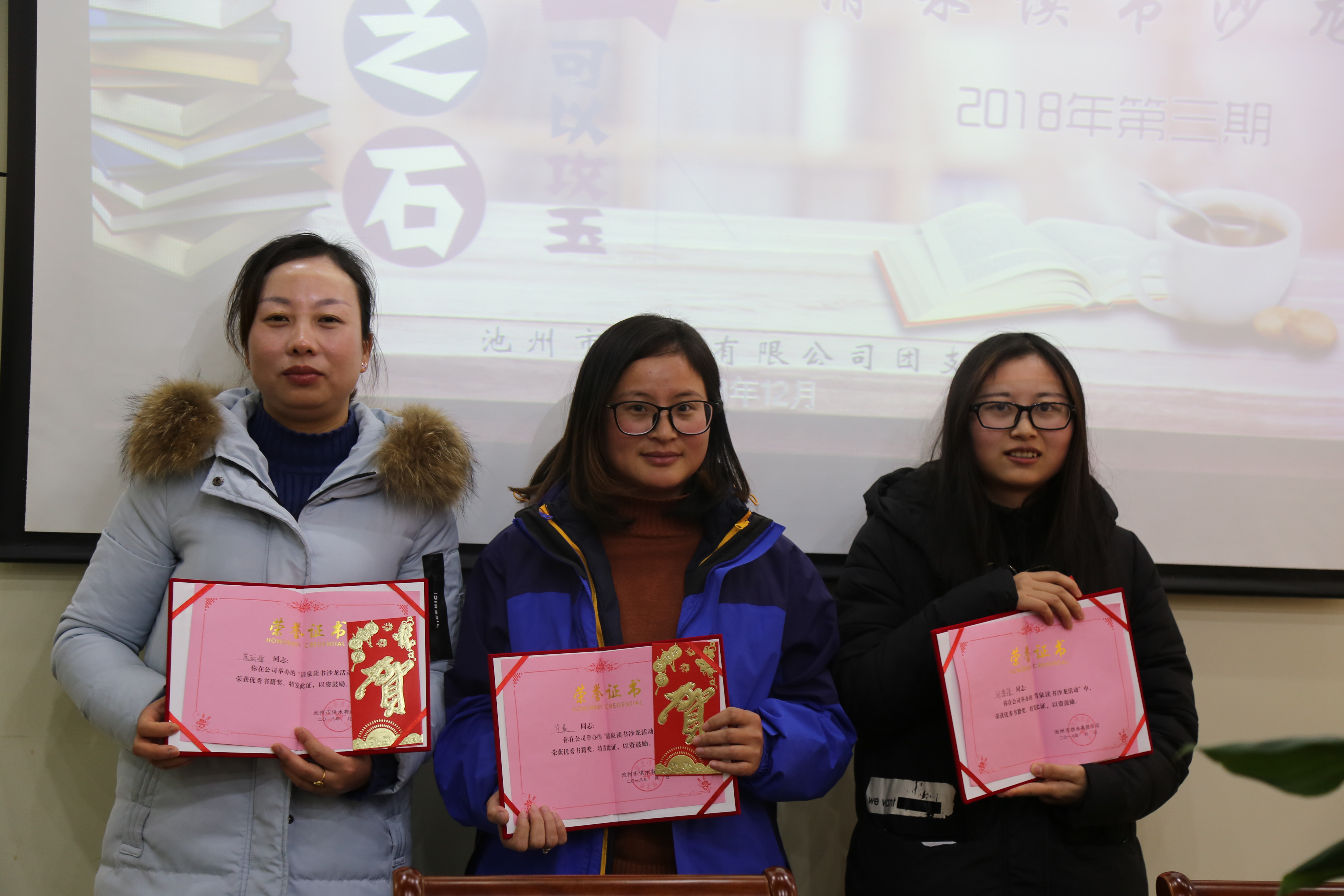經(jīng)過現(xiàn)場投票此次讀書沙龍推選出三名優(yōu)秀推薦獎(jiǎng),他們分別是寧夏為大家?guī)淼摹度诵缘膬?yōu)點(diǎn)》,何倩倩為大家?guī)淼摹兑粋(gè)人的朝圣》和焦麗情為大家?guī)淼摹缎聲r(shí)代知識(shí)分子榜樣》。本次讀書沙龍活動(dòng)在李書記為優(yōu)秀推薦員工頒獎(jiǎng)的環(huán)節(jié)中圓滿落下帷幕。通過此次活動(dòng),使青年員工們認(rèn)識(shí)到只有廣泛閱讀書籍,加深自我的文化素養(yǎng)才能跟上公司持續(xù)發(fā)展的腳步,為公司提升文化軟實(shí)力做出貢獻(xiàn)。