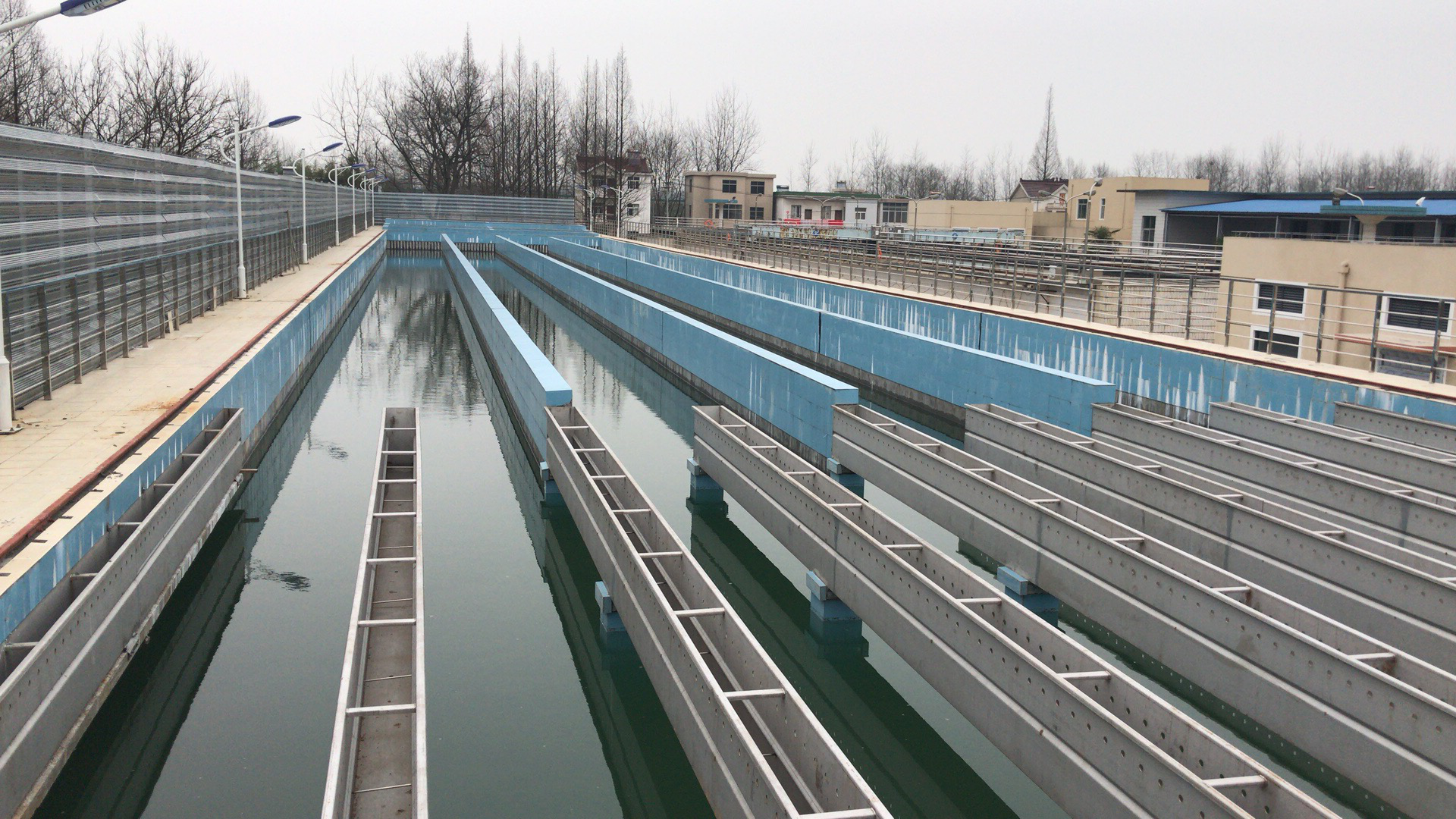平流沉淀池是應(yīng)用顆;蛐躞w的重力沉淀作用去除水中懸浮物的一種傳統(tǒng)水處理構(gòu)筑物,也是水處理過程中一道重要的工藝流程,本項(xiàng)目中平流沉淀池總設(shè)計(jì)規(guī)模為40000m3/d,停留時間是2.1h,水流速度為12mm/s,放空時間為3h,在進(jìn)水過程中,經(jīng)現(xiàn)場觀察,水量分配均勻,折板分布合理,絮凝礬花效果良好。
