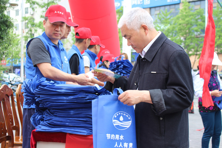 活動(dòng)設(shè)置了宣傳臺,志愿者們通過向來往的市民分發(fā)節(jié)水宣傳資料和環(huán)保袋,講解生活中一些節(jié)約用水的小知識,提倡使用節(jié)水型生活用水器具,來往市民紛紛駐足聆聽。