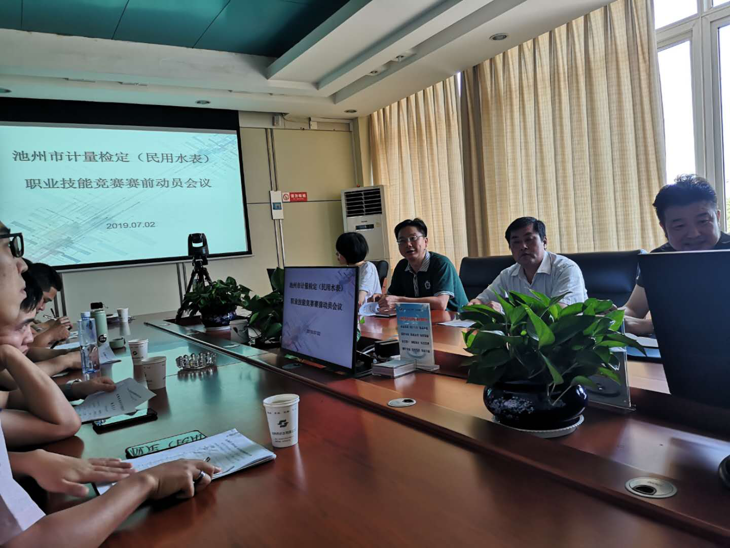 為進(jìn)一步提高我市計(jì)量檢定人員的專業(yè)知識及檢定操作水平,同時(shí)為參加安徽省計(jì)量檢定(民用水表)職業(yè)技能競賽活動(dòng)做好備戰(zhàn)輔導(dǎo)工作,池州市市場監(jiān)督管理局于7月2日在我公司水表檢定中心舉辦了職業(yè)技能競賽賽前培訓(xùn)會(huì)。東至縣自來水廠、青陽縣供水有限責(zé)任公司、公司水表檢定中心全體人員參加此次培訓(xùn),市市場監(jiān)督管理局副局長虞新勝到會(huì),市計(jì)量科長王斌主持會(huì)議。