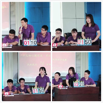 “不忘初心跟黨走·牢記使命爭先鋒”——慶祝國慶70周年知識競賽活動。 本次知識競賽活動由公司團支部承辦,參賽人員由各團小組推薦,旨在激勵公司廣大團員青年深入學習領會習近平新時代中國特色社會主義思想,以賽促學、以學促做,讓黨的路線方針政策入腦入心,激發(fā)全體青年員工不忘初心跟黨走,全身心投入到公司生產經營各項工作中去,在公司發(fā)展中成長成才。公司黨支部支委、領導班子成員、公司機關全體人員觀摩了本次知識競賽。