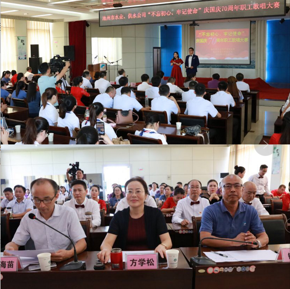 金秋送爽,丹桂飄香,為慶祝新中國(guó)成立70周年,展現(xiàn)池州供水人朝氣蓬勃,昂揚(yáng)向上的精神面貌,2019年9月29日,在公司四樓會(huì)議室舉辦“不忘初心、牢記使命”慶祝國(guó)慶70周年職工歌唱大賽。市建設(shè)建材工會(huì)主席方學(xué)松、市文明辦副調(diào)研員潘海苗、市供水公司董事長(zhǎng)鐘誠(chéng)擔(dān)任比賽評(píng)委嘉賓。