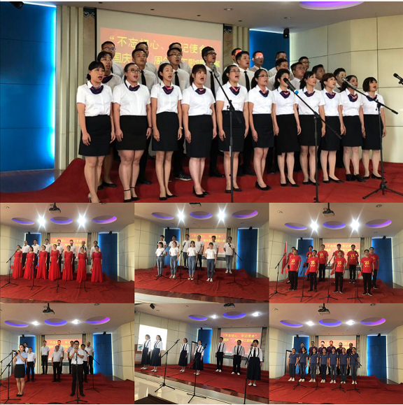 合唱團(tuán)隊(duì)來(lái)自公司13個(gè)職能部門(mén)組成的7支代表隊(duì)!侗Pl(wèi)黃河》、《紅星閃閃》等歌曲回顧了革命戰(zhàn)爭(zhēng)年代的激蕩風(fēng)云和黨的光輝歷程,《歌唱祖國(guó)》、《紅旗飄飄》、《我和我的祖國(guó)》等曲目唱響了大家對(duì)祖國(guó)日益強(qiáng)大的自豪驕傲之情。7支合唱團(tuán)用他們飽含深情的歌聲謳歌祖國(guó),點(diǎn)贊時(shí)代,把比賽氣氛一次又一次的推向了高潮。