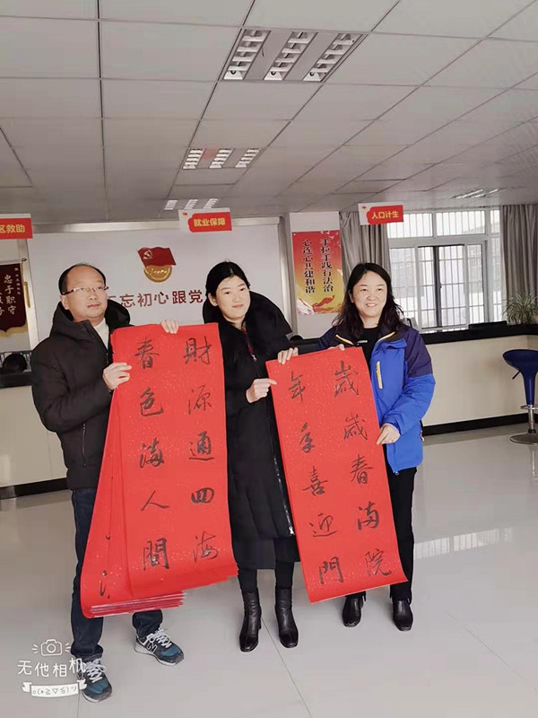 隨著鼠年春節(jié)的臨近,寫春聯(lián)、送春聯(lián)、送祝;顒右灿l(fā)熱鬧起來。跟往年一樣,池州市供水有限公司早早謀劃、請專人撰寫春聯(lián)并于2020年1月19日,由王忠榮副總經(jīng)理帶隊(duì),深入平天湖社區(qū)、東湖路社區(qū),開展送春聯(lián)迎新春活動。