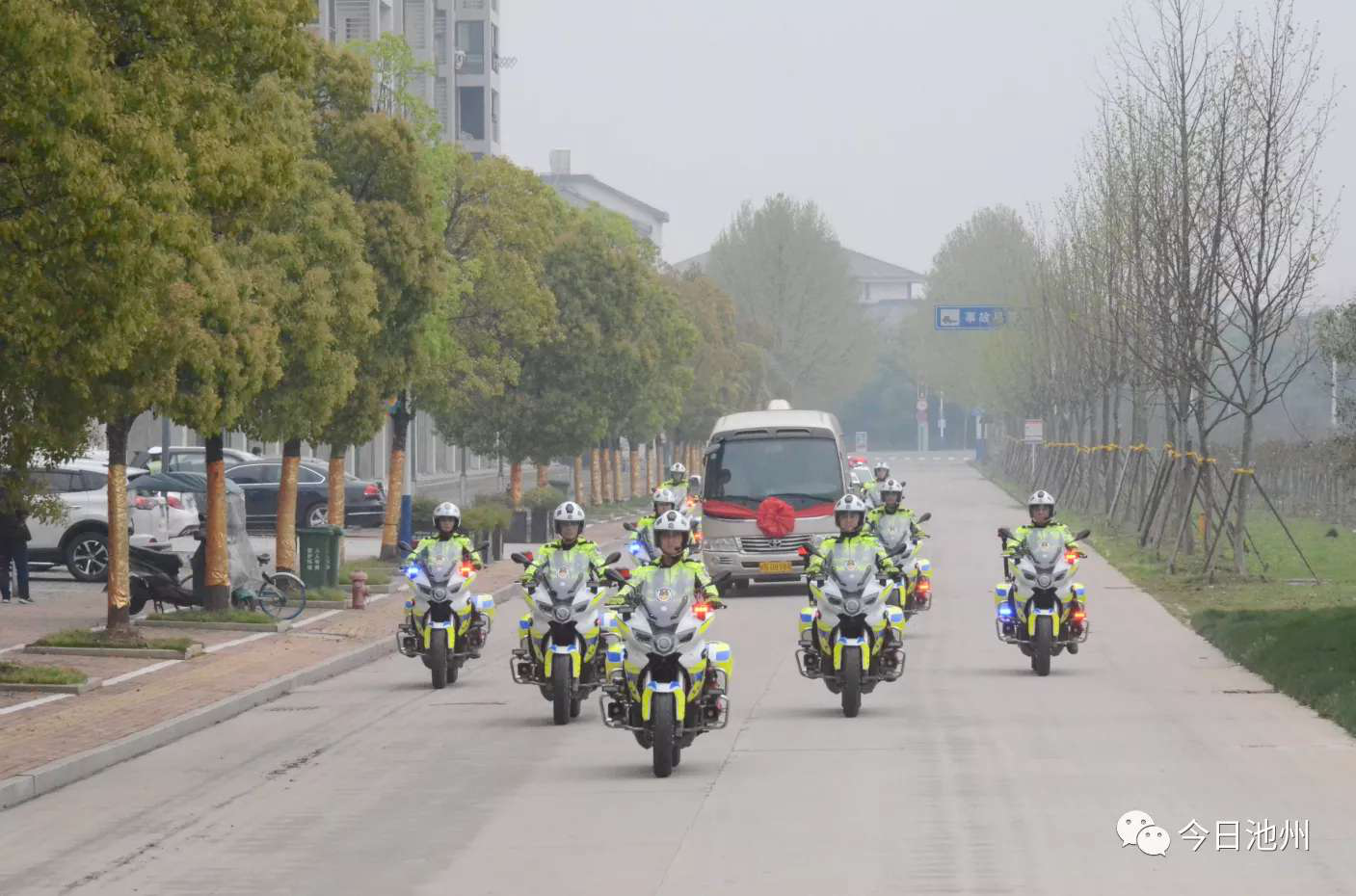 上午10點48分,警燈閃亮輝煌,9名交警鐵騎開道護(hù)航著懸掛“歡迎池州市援鄂醫(yī)療隊凱旋歸來”的中巴車,載著7名首批英雄迎面而來,供水公司人員紛紛拿起相機(jī),拍下這珍貴的一刻,有人不自覺地舉起了致敬的手。