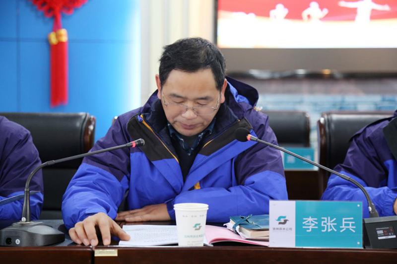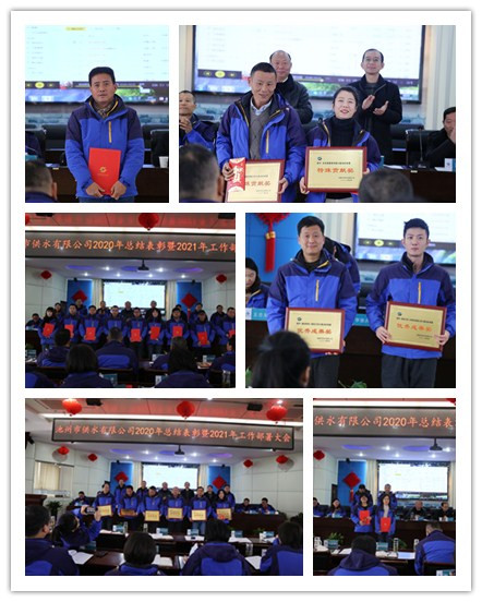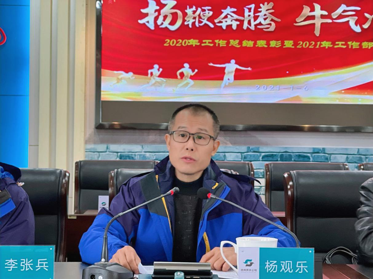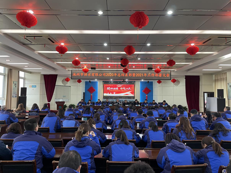 | ——池州供水公司召開2020年總結(jié)表彰暨2021年工作部署大會      1月6日上午,池州供水有限公司召開2020年總結(jié)表彰暨2021年工作部署大會?偨Y(jié)2020年工作,回顧工作歷程,分析當(dāng)前形勢和機遇,謀劃2021年工作思路和重點任務(wù)。公司董事長楊觀樂、總經(jīng)理李張兵率全體員工160余人參加會議。市住建局黨組副書記余祖平、股東方建投集團總經(jīng)理劉俊、公用事業(yè)管理處副處長汪高峰出席會議并講話。會議由公司副總經(jīng)理包洪全主持。   總經(jīng)理李張兵作《迎難而上 創(chuàng)新實干 譜寫新格局下健康發(fā)展新篇章》年度工作報告,從突出供水主業(yè)、內(nèi)部管理、重點工作、文化建設(shè)、黨建引領(lǐng)等五個方面,全面回顧、總結(jié)公司2020年各項工作取得的新成果。他指出2020年公司售水量突破3000萬噸歷史大關(guān),產(chǎn)銷差率取得10.93%的歷史最好成績,69座老舊小區(qū)二次供水泵站改造提前完成,城鄉(xiāng)供水一體化發(fā)展取得新突破,公司喜獲安徽省第十二屆文明單位、第四屆池州市市長質(zhì)量獎提名獎、2019年池州市雙擁優(yōu)秀單位等榮譽稱號,公司黨支部黨建品牌摘得市屬國有企業(yè)黨建品牌評審大賽一等獎桂冠,公司發(fā)展呈現(xiàn)一派新氣象;同時,他指出公司仍然面臨外部環(huán)境不確定、內(nèi)部活力待進一步激發(fā)等的困難和挑戰(zhàn)。他要求,2021年,公司上下要勠力同心、堅定信念、保持定力,不斷提升經(jīng)營管理、供水保障、用戶服務(wù)、業(yè)務(wù)拓展、創(chuàng)新發(fā)展能力,實施“131”工程,即推動一項核心(水價調(diào)整)、推進三項改革(機構(gòu)、薪酬和績效改革)、實施水源地保護工程等,他從六個方面全面部署了公司2021年各項工作及核心任務(wù)。   副總經(jīng)理王忠榮宣讀了公司《關(guān)于表彰2020年度先進集體和先進個人的決定》文件,隨后,與會領(lǐng)導(dǎo)對獲獎部門和個人進行了現(xiàn)場頒獎。