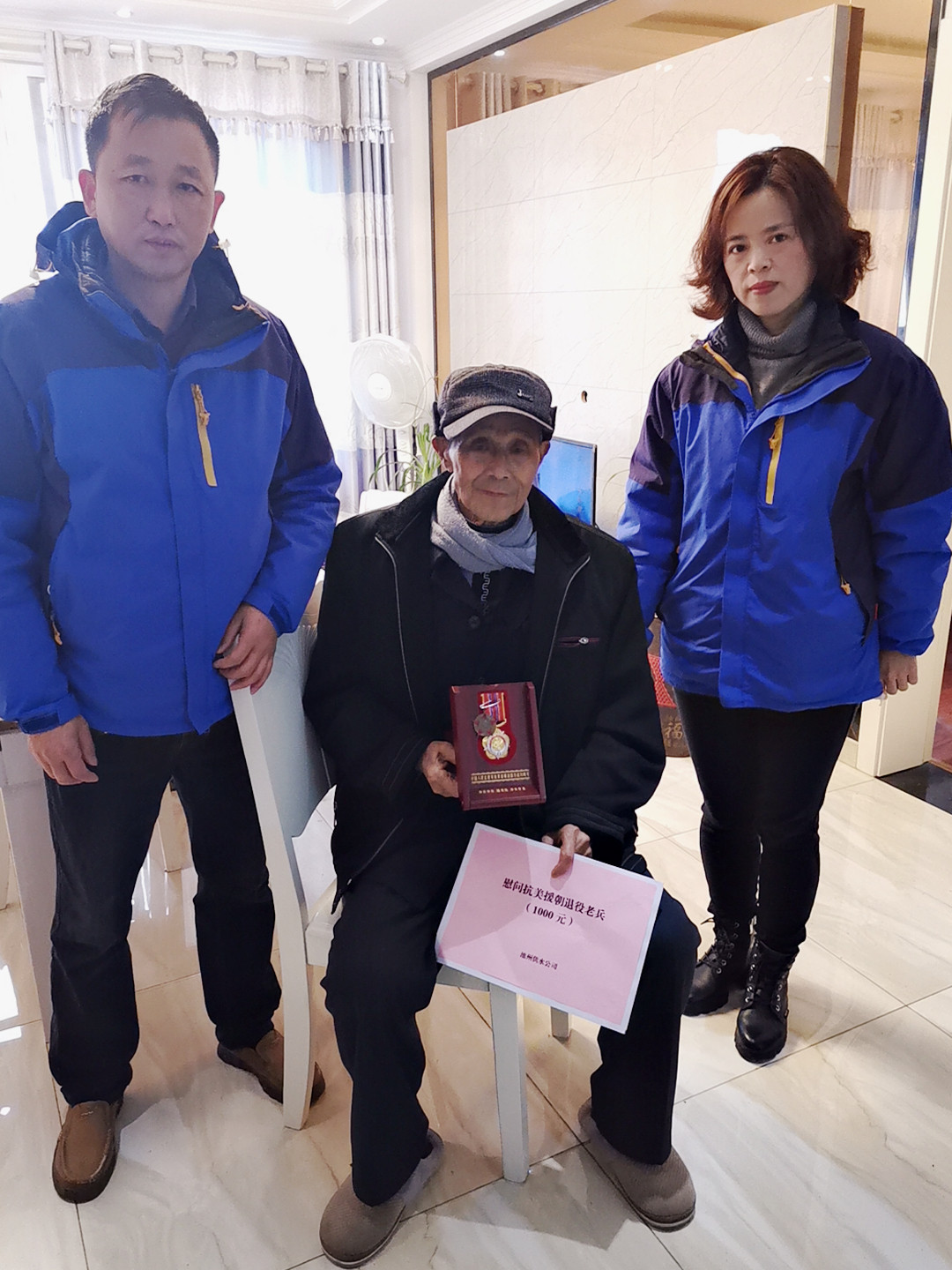 | ——池州供水公司走訪慰問社區(qū)抗美援朝老兵   偉大時代呼喚偉大精神,崇高事業(yè)需要榜樣引領(lǐng)。2020年是中國人民志愿軍抗美援朝出國作戰(zhàn)70周年,池州市供水有限公司與平天湖社區(qū)在對社區(qū)進(jìn)行走訪摸排中,發(fā)現(xiàn)社區(qū)住有一位抗美援朝老兵。2021年1月26日,由池州市供水公司工會主席施潔帶隊,有省住建系統(tǒng)勞動模范汪學(xué)斌、綜合辦相關(guān)工作人員參加的一行,在平天湖胡桂珍書記帶領(lǐng)下,走進(jìn)了平天湖社區(qū)江山郡小區(qū)抗美援朝老兵左新德家,對這位年近90的老英雄進(jìn)行了新春慰問。   左新德同志1933年生,1951年隨部隊奔赴朝鮮,在“烽煙滾滾”的朝鮮戰(zhàn)場,幾經(jīng)生死,于1954年作為最后一批志愿軍勝利回國。今年88歲的老英雄精神狀態(tài)極好,開心地與在場人員講述他的援朝經(jīng)歷,直言他是死過幾次的人了,比起當(dāng)年的艱苦,現(xiàn)在已經(jīng)是幸福得不得了的日子。