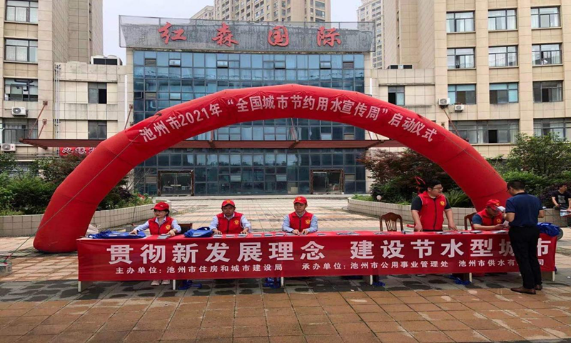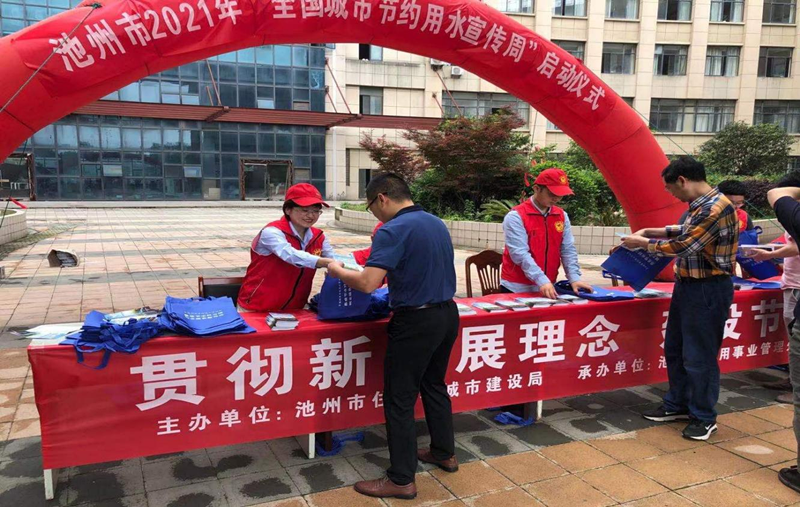 | 2021年是全國城市節(jié)約用水宣傳周活動開展30周年,為貫徹落實習近平生態(tài)文明思想,落實黨中央、國務院關于加強節(jié)約用水工作的決策部署,實施國家節(jié)水行動,5月13日,由池州市住建局主辦、公用事業(yè)管理處、供水公司承辦的第30屆節(jié)水宣傳周啟動儀式在紅森國際廣場舉行。市住建局、公用事業(yè)管理處、供水公司相關領導到場祝賀!   5月13日上午9點,趁著天氣晴好,啟動儀式如期舉行,來自公用事業(yè)管理處和供水公司的志愿者們,在宣傳展臺發(fā)放宣傳冊、宣傳資料,向過往的人群講解節(jié)約用水的意義和國家節(jié)水戰(zhàn)略,活動共發(fā)放宣傳冊500份。