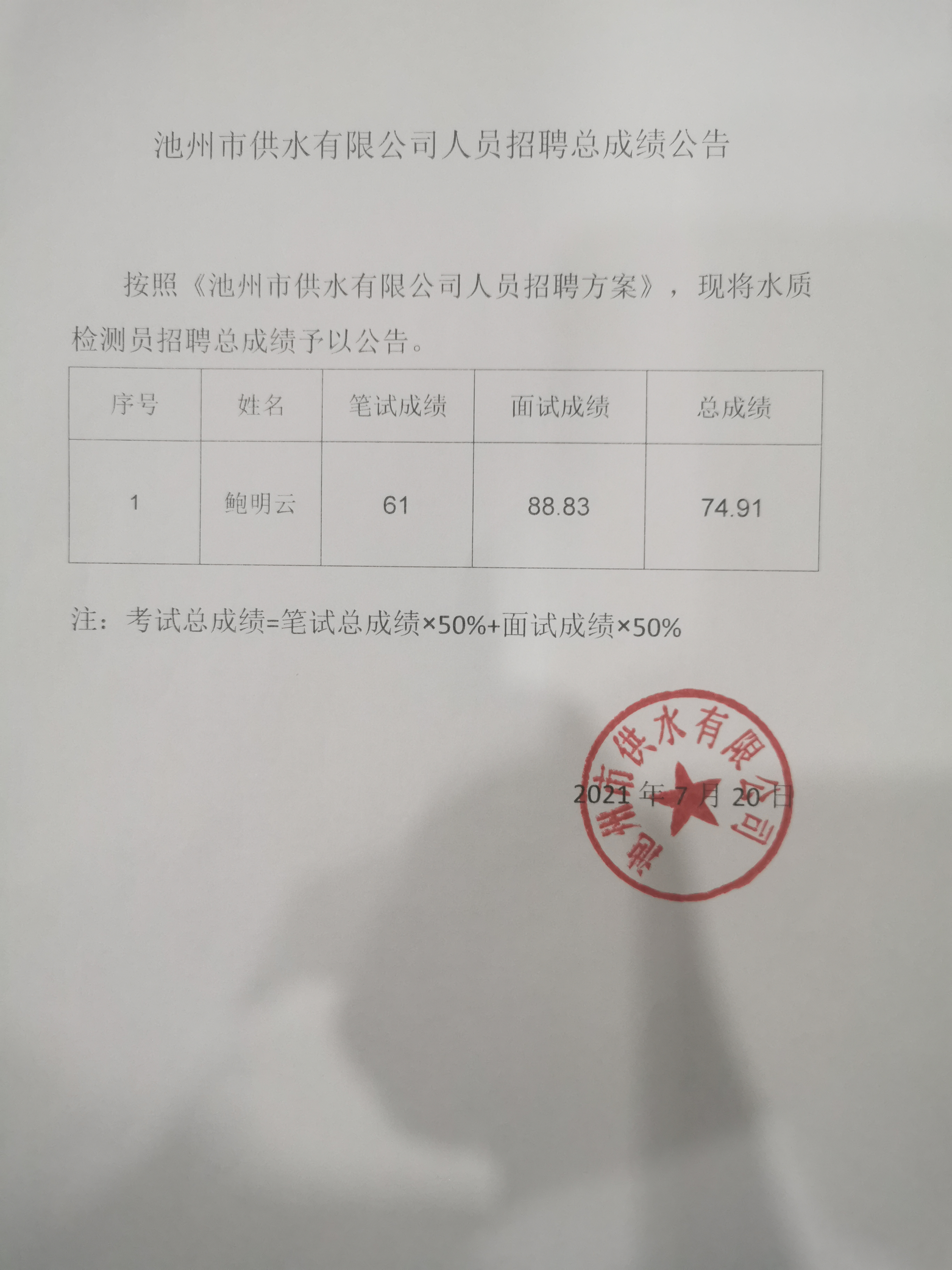 ----------------------------------------------------------------------------------- 上一篇:水質(zhì)檢測(cè)員招聘筆試成績(jī)公告 下一篇:公開招聘擬聘用人員公示 | |