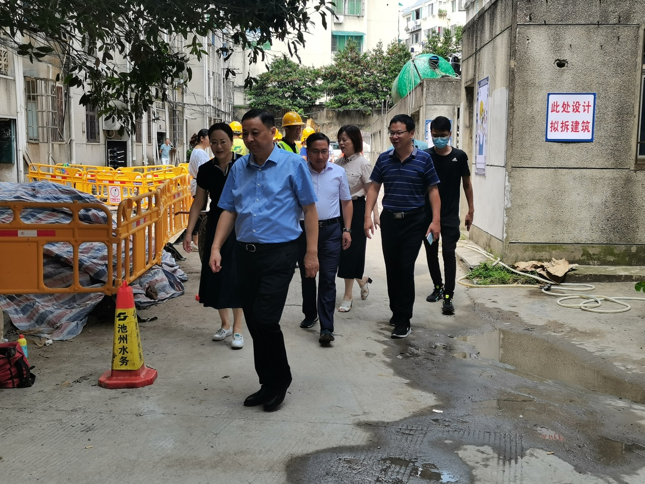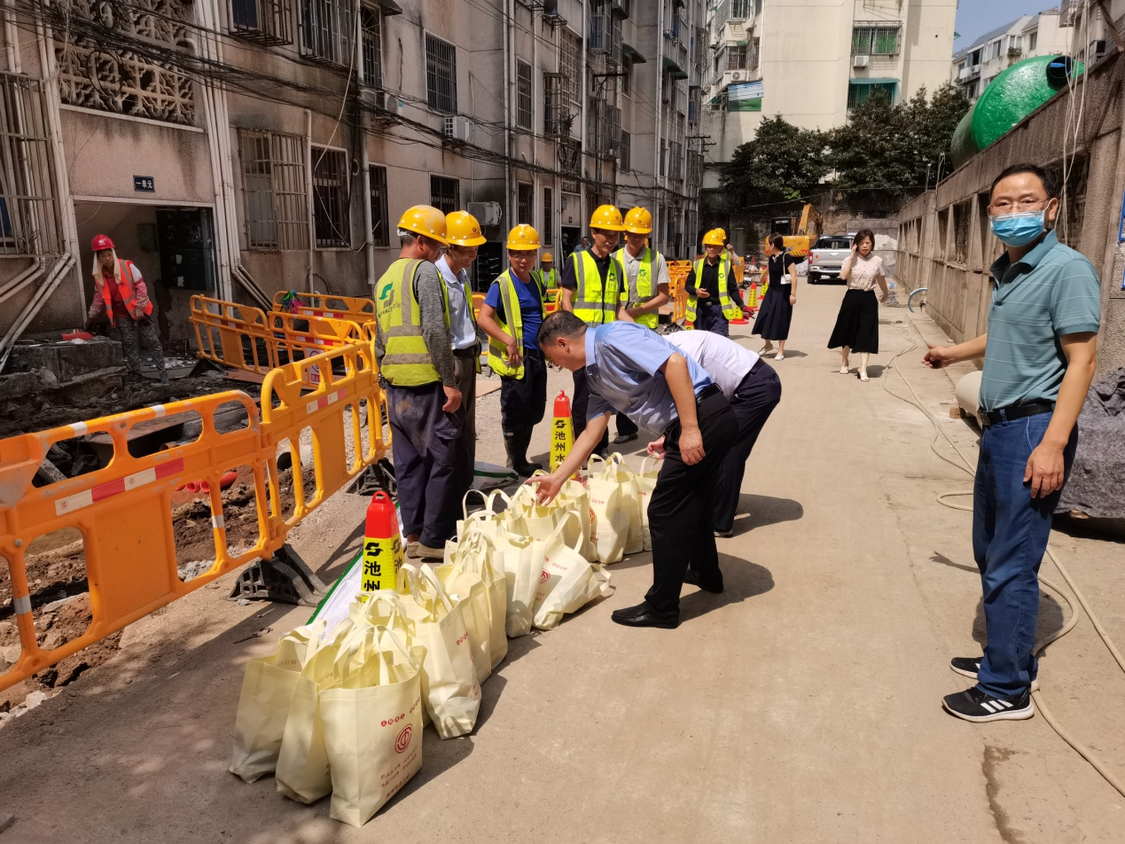 |  ——高溫季節(jié)施工慰問       8月3日,池州市總工會主席劉建設(shè)、副主席姚國慶、蘇朋樂、池州市建設(shè)建材工會主席方學(xué)松,在池州市供水公司總經(jīng)理李張兵等的陪同下,頂著三伏天的驕陽烈日親臨施工現(xiàn)場,慰問在持續(xù)高溫中仍然奮戰(zhàn)在一線的施工作業(yè)人員,為他們送上一份誠摯的關(guān)懷。        在東湖路花園小區(qū)老舊小區(qū)改造工程施工現(xiàn)場,慰問團(tuán)一行給大家送上防暑降溫慰問品,感謝施工作業(yè)人員在高溫下堅(jiān)守工程一線,為池州市老舊小區(qū)改造工程辛苦勞作,揮灑勤勞的汗水。 當(dāng)防暑降溫慰問品送到一線員工的手中時(shí),也讓廣大工人們感到了三伏天里的一片清涼。