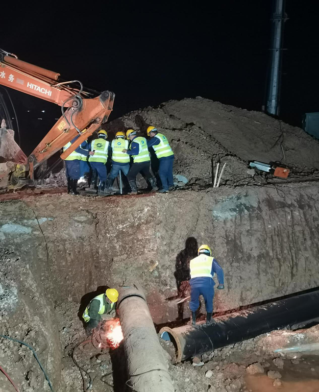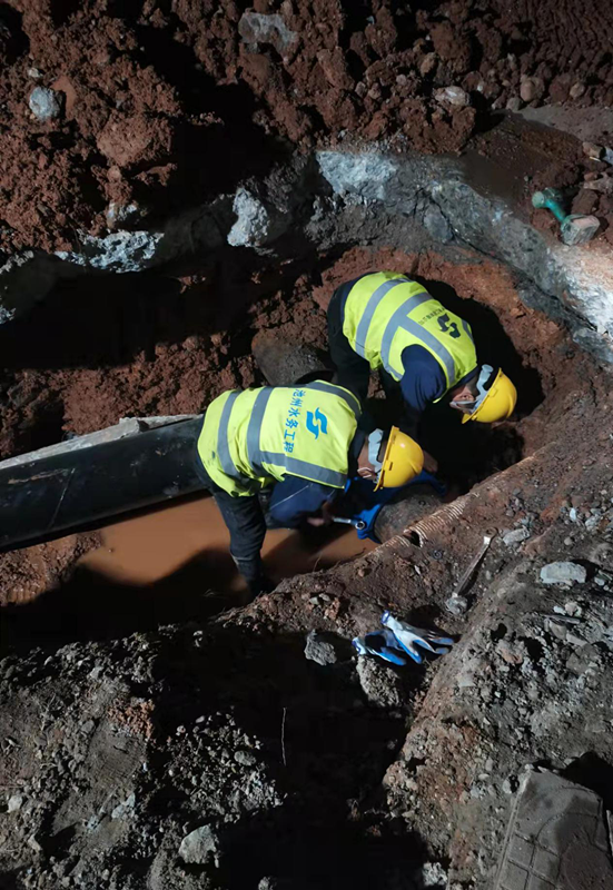 | ——池州供水清溪大道供水管道改造項目報道   2021年12月14日凌晨一點,寒風(fēng)吹拂,清溪大道與牧之路交叉處施工現(xiàn)場燈火通明,新建DN500球墨鑄鐵管的碰頭施工仍在繼續(xù)。江南集中區(qū)企業(yè)眾多,為了不影響正常供水,本次施工被安排在晚上11點之后進行,公司負(fù)責(zé)人和技術(shù)人員全部到場,全程跟蹤施工過程,確保不出現(xiàn)任何問題,直到凌晨2點半施工結(jié)束。