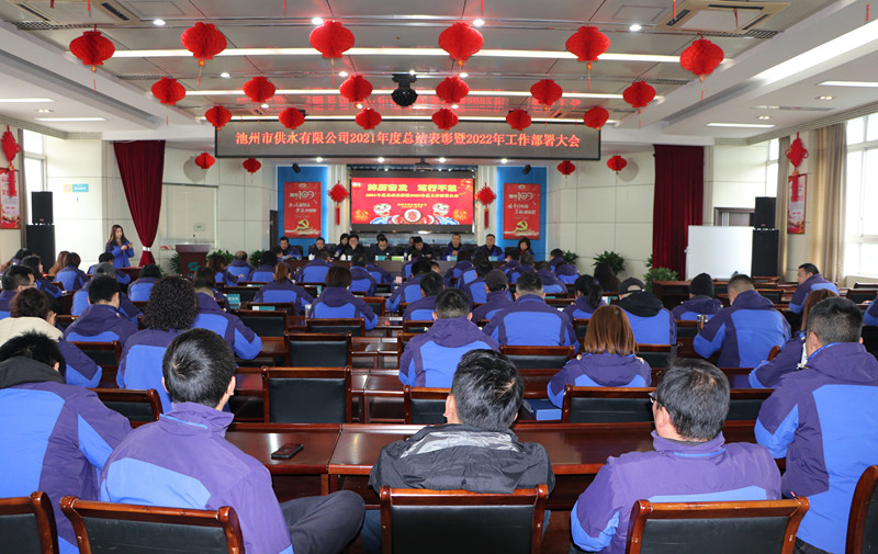 | ——池州供水公司召開2021年總結(jié)表彰暨2022年工作部署大會   奮斗創(chuàng)造歷史,實干成就未來。2022年1月7日下午,池州市供水有限公司四樓會議室喜慶祥和、群情振奮,公司2021年度總結(jié)表彰暨2022年工作部署大會在此隆重召開。會議邀請了市住建局汪一偉副局長、建投集團(tuán)何平副總經(jīng)理、公用事業(yè)管理處供排水辦公室俞靖主任等主管部門領(lǐng)導(dǎo)參加,董事長楊觀樂、總經(jīng)理李張兵率全體員工100余人參加大會。會議由副總經(jīng)理包洪全主持。