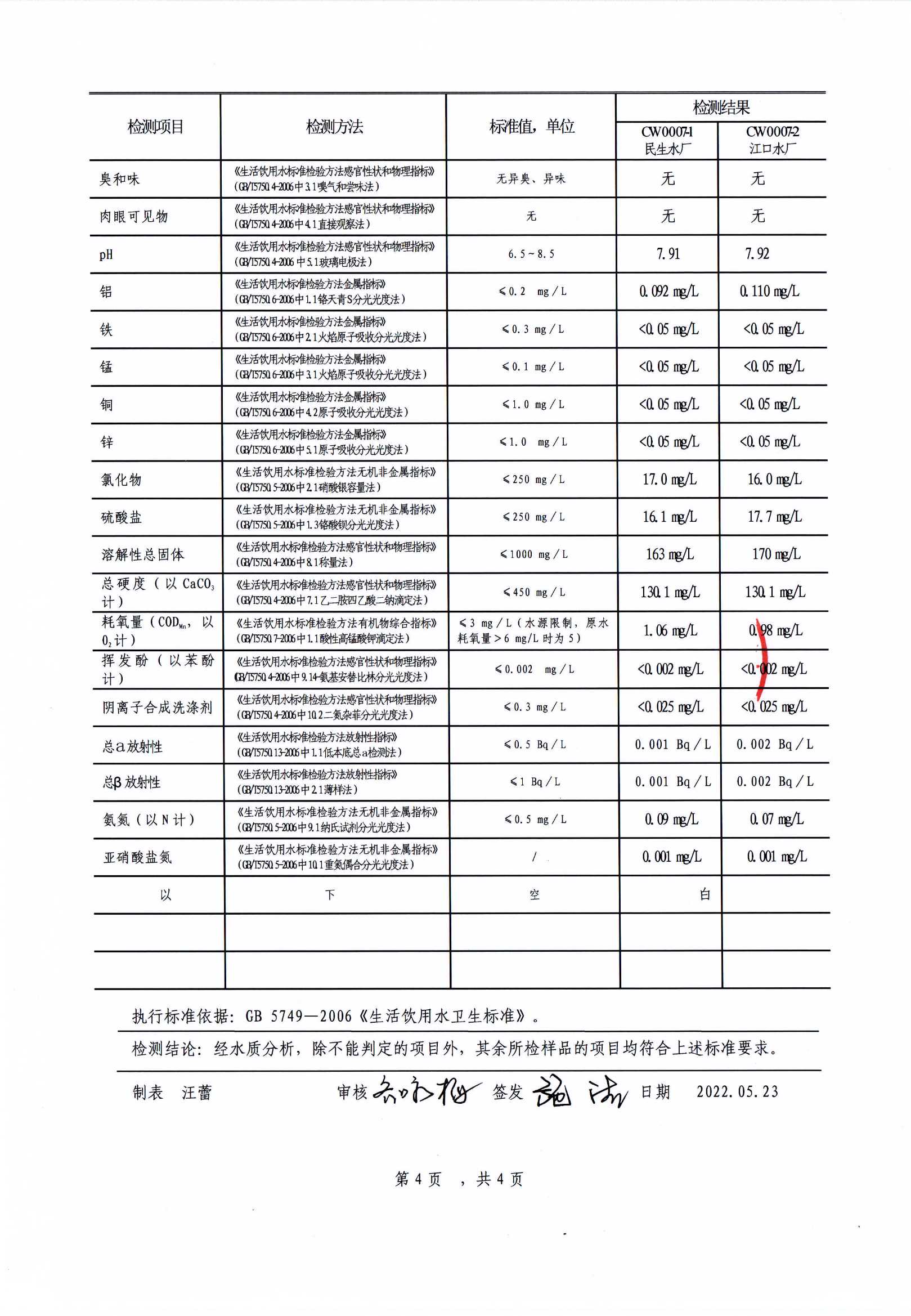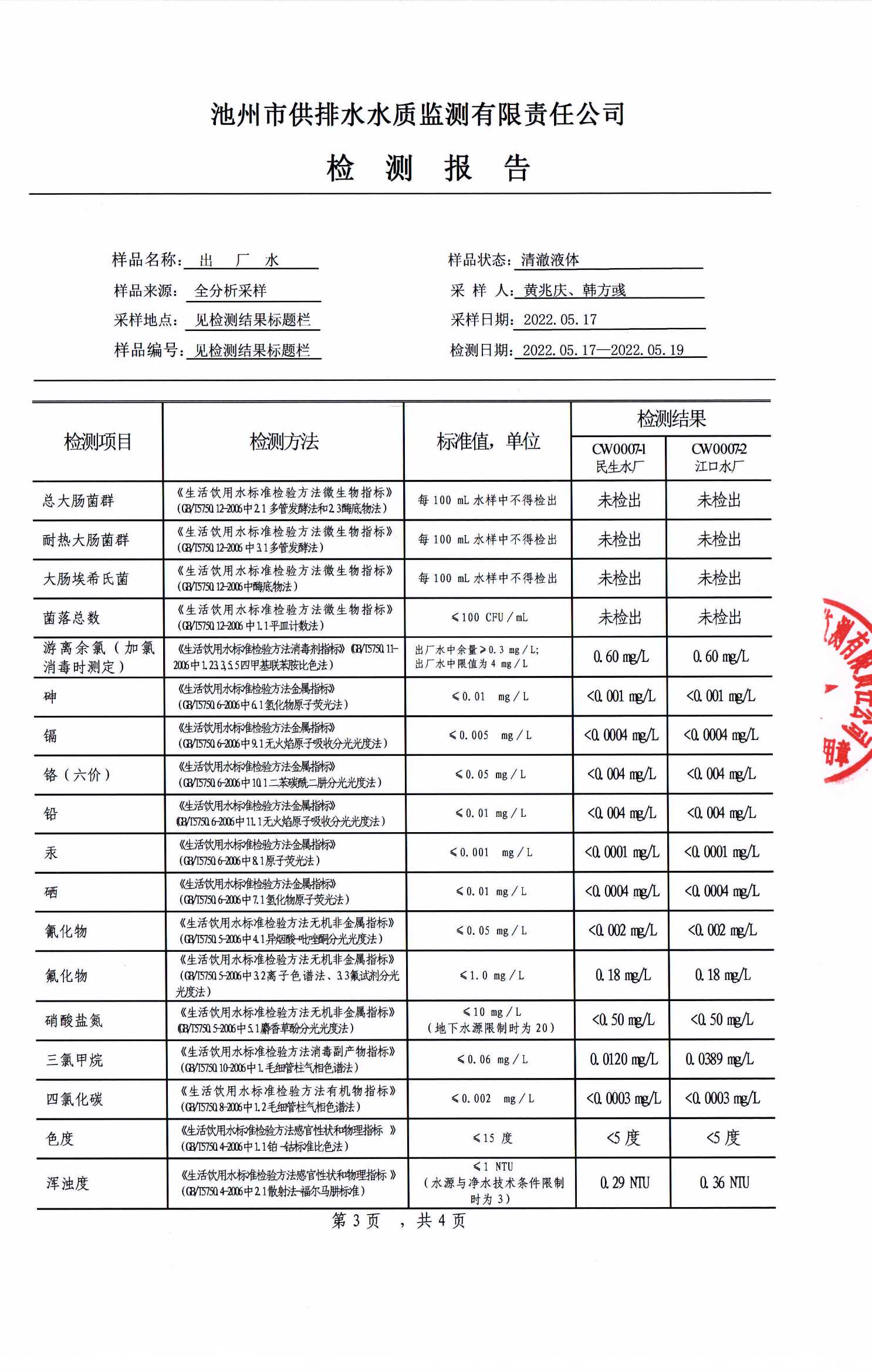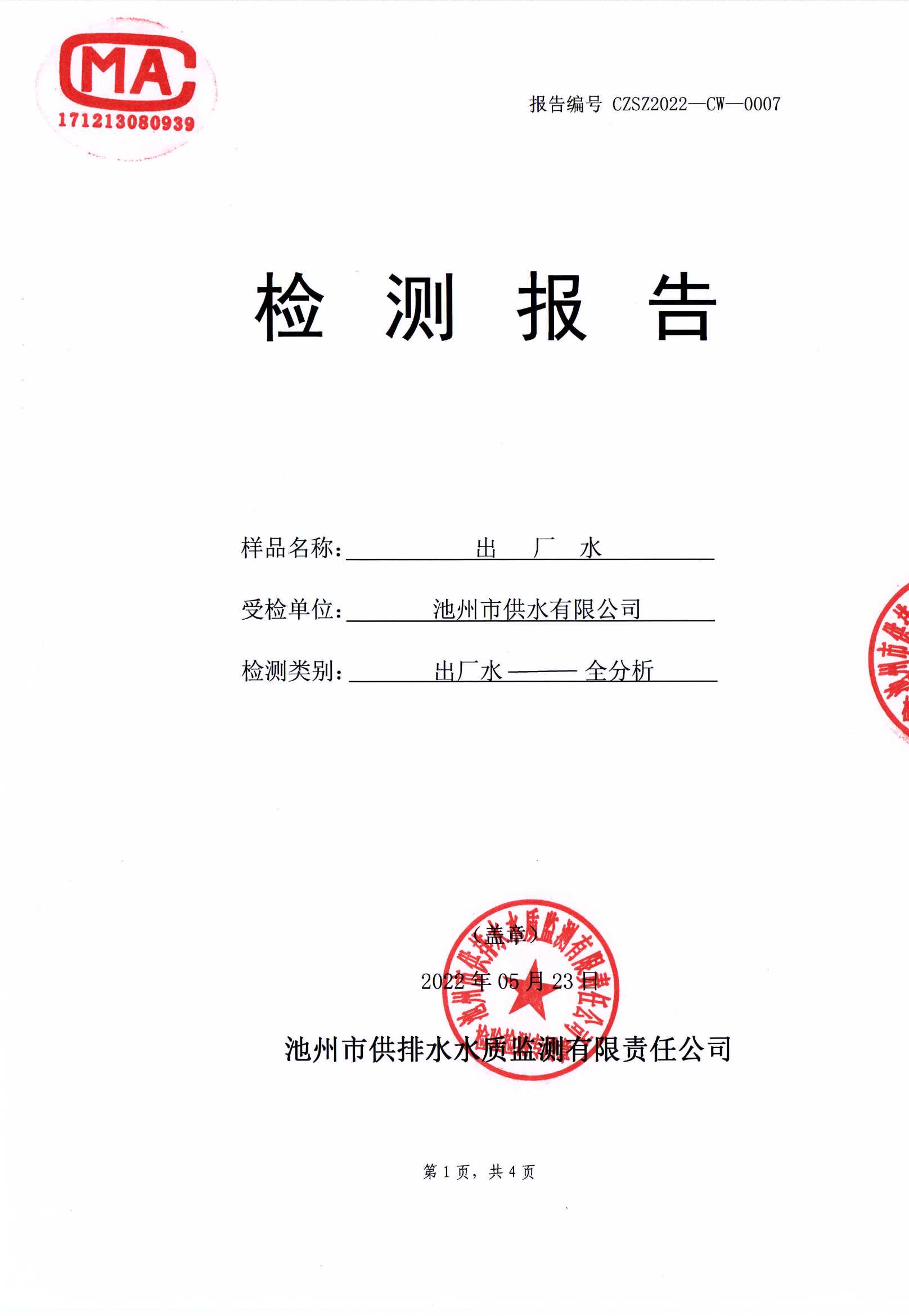 | 池州市供水有限公司出廠水(全分析)檢測報告(2022.06.15) | |