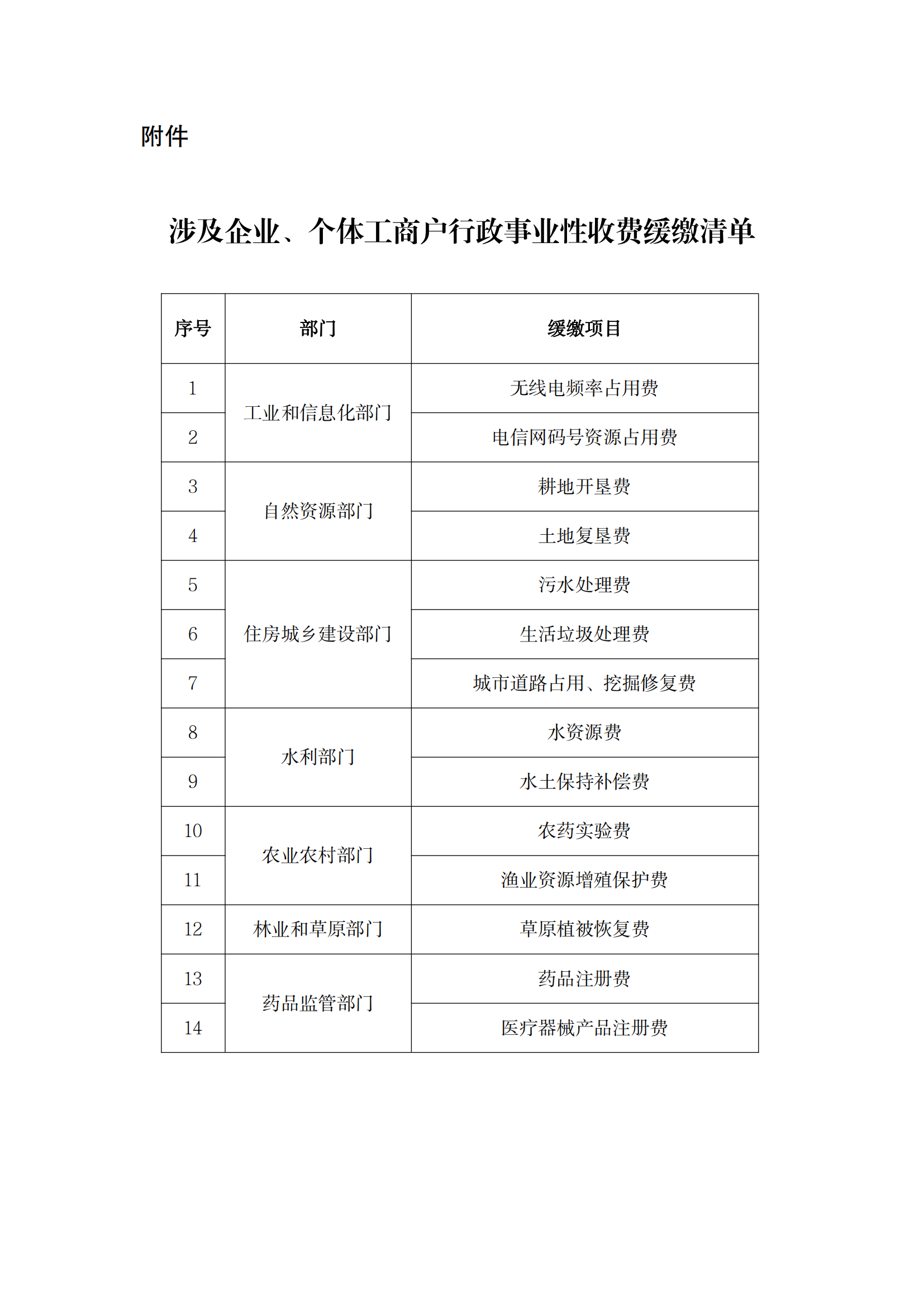 | 關(guān)于緩繳涉及企業(yè)、個(gè)體工商戶(hù)部分行政事業(yè)性收費(fèi)的公告 | |