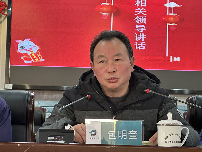 最后,上級(jí)主管部門領(lǐng)導(dǎo)包明奎主任對(duì)公司2022年的工作給予了充分肯定,對(duì)獲得表彰的先進(jìn)集體和個(gè)人表示熱烈祝賀,對(duì)池州供水這個(gè)優(yōu)秀集體勇于奉獻(xiàn)和敢于拼搏的精神表示極大的嘉許,并提前祝全體供水人新春快樂!他指出,供水公司能克服重重困難,2022年取得如此驕人的成績,實(shí)屬不易,也為2023年爬坡提速提供了堅(jiān)實(shí)基礎(chǔ)。他要求池州供水公司全體干部職工,應(yīng)保持不屈不撓、堅(jiān)毅不拔的精神,繼續(xù)譜寫新輝煌。一要堅(jiān)持人民至上,政治引領(lǐng),著力解決人民群眾難點(diǎn)、痛點(diǎn)問題;二要堅(jiān)持問題導(dǎo)向,全力以赴,全面提升服務(wù)質(zhì)量;三要堅(jiān)持持續(xù)發(fā)展,穩(wěn)中求進(jìn),奮力提升供水保障能力;四要堅(jiān)持生命至上,安全發(fā)展。