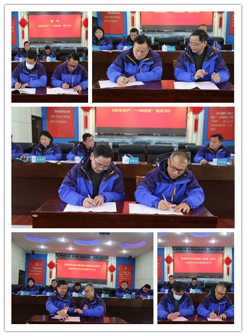 隨后,公司高管、各部門負責人、各小組組長簽署安全生產(chǎn)、一崗雙責、經(jīng)營業(yè)績、黨風廉政等各項責任書,各分管領導對分管部門作工作要求,相關部門作表態(tài)發(fā)言。