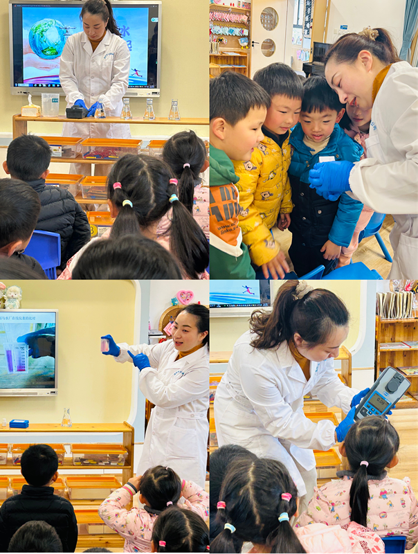 最后鮑平珍為小朋友們演示了趣味小實(shí)驗(yàn),這個(gè)小朋友看看濁度儀的數(shù)值,那個(gè)小朋友看看游離氯測試盒的變色情況,在這熱熱鬧鬧的氛圍下,圓滿完成了這場充滿趣味的課堂活動。