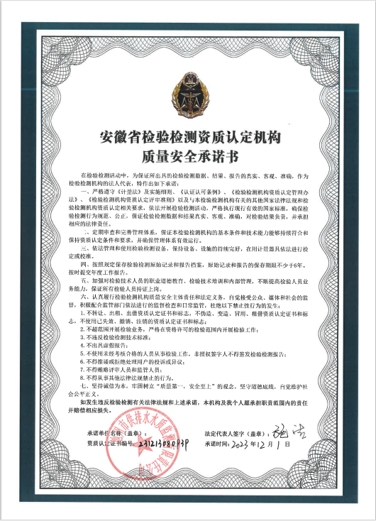 | 池州市供排水水質(zhì)監(jiān)測有限責(zé)任公司質(zhì)量安全承諾書 | |