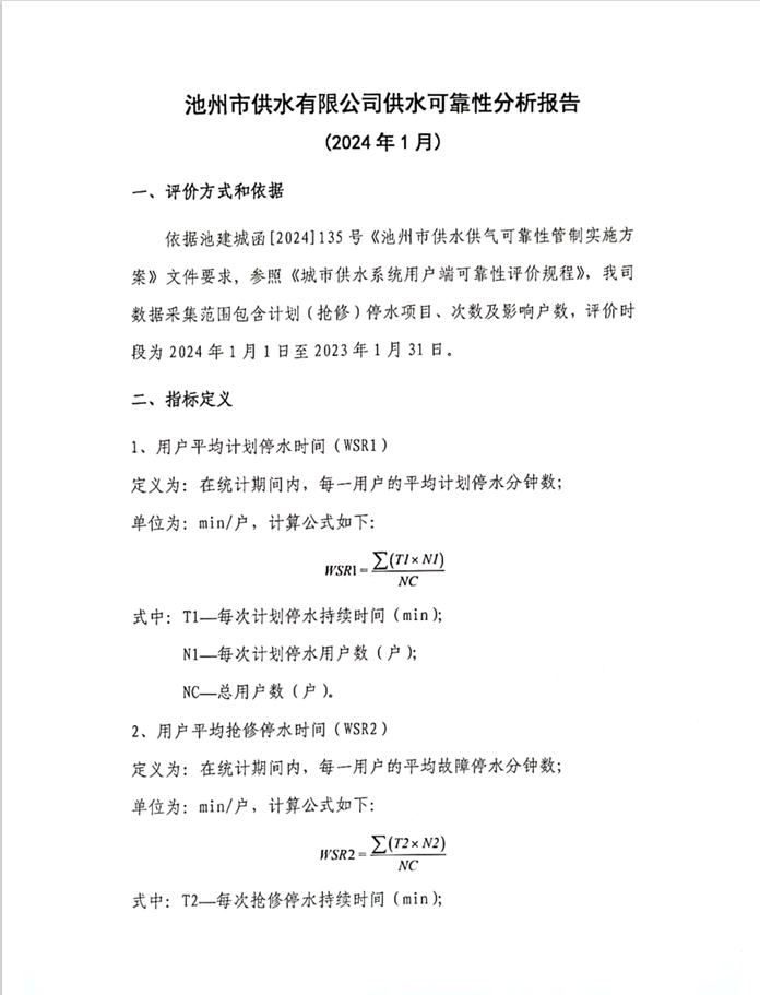 | 池州市供水有限公司供水可靠性分析報(bào)告 | |