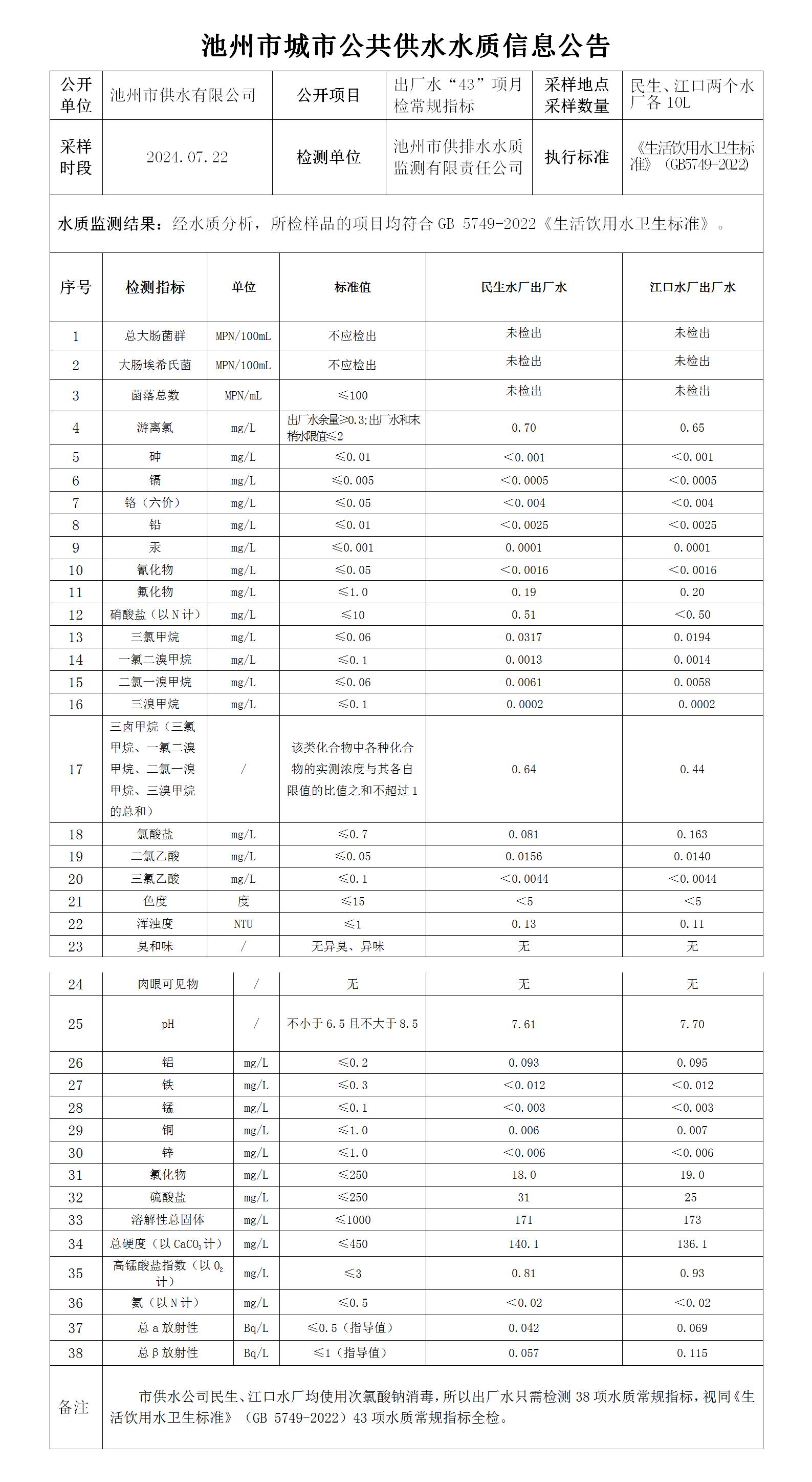 | 池州市城市公共供水水質(zhì)信息公告7月份出廠水月檢常規(guī)指標(biāo) | |