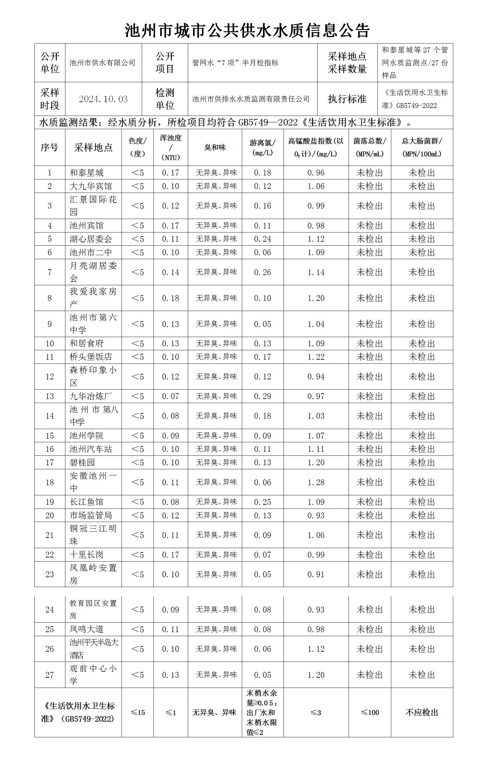 | 池州市城市公共供水水質(zhì)信息公告管網(wǎng)水“7項(xiàng)”半月檢指標(biāo)10-1 | |
