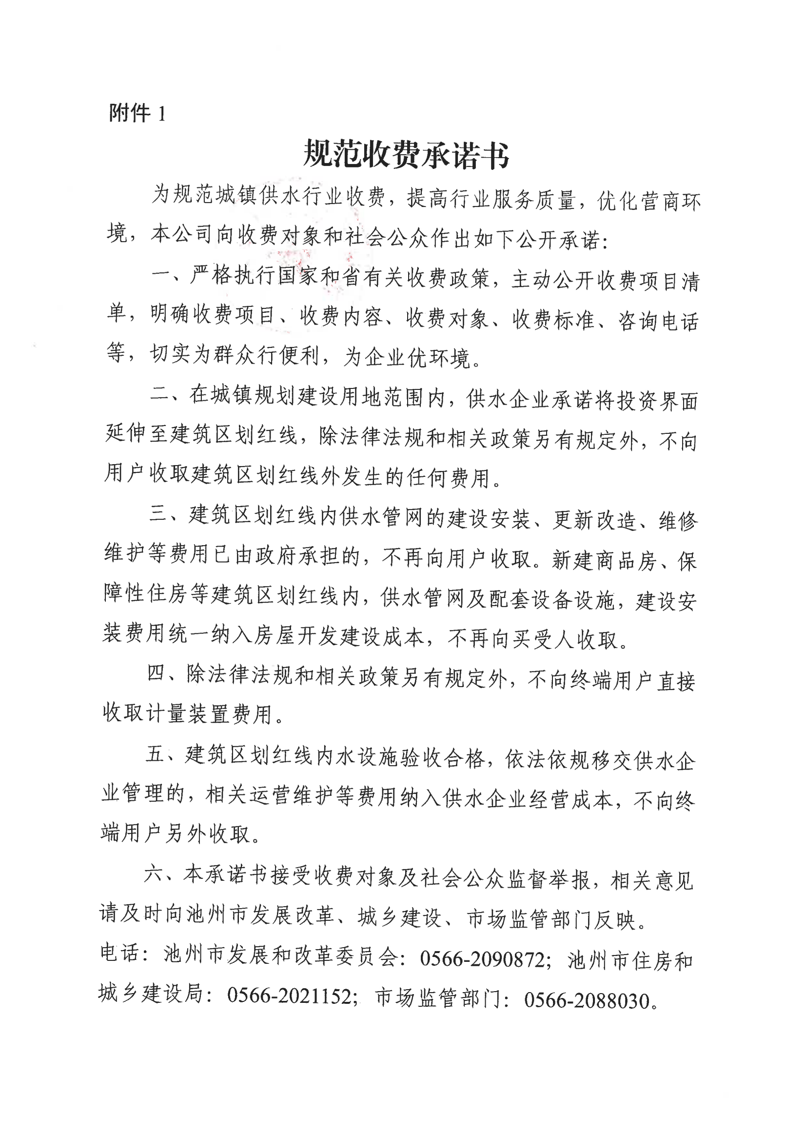 | 池州市供水有限公司收費(fèi)項(xiàng)目清單及規(guī)范收費(fèi)承諾書 | |