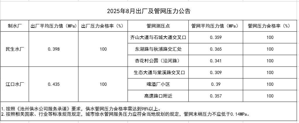 | 2025年8月出廠及管網(wǎng)壓力公告 | |