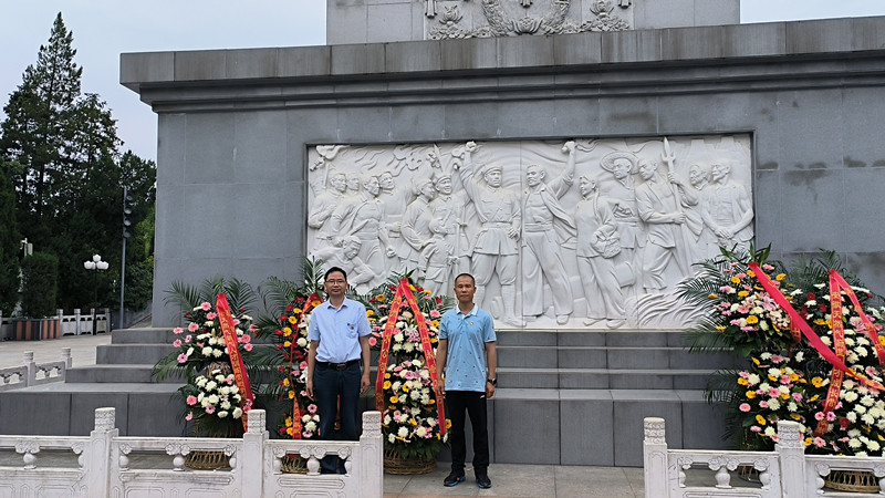 一寸山河一寸血,一抔熱土一抔魂。革命老區(qū)金寨縣“山山埋忠骨,嶺嶺樹豐碑”,無數(shù)英烈的鮮血染紅了這片土地。大家首先來到金寨縣紅軍廣場,拾級而上,金寨革命烈士紀(jì)念塔映入眼簾,塔身篆刻劉伯承元帥題詞的“燎原星火”四個大字。書記和副書記代表支部向革命烈士紀(jì)念塔敬獻(xiàn)花籃,表達(dá)對革命烈士的深切緬懷和無限敬仰。在紀(jì)念塔下,面對鮮艷的黨旗,大家舉起右手,重溫入黨誓詞,誓言鏗鏘,激昂回響,表達(dá)了全體黨員矢志不渝守初心、奮發(fā)有為擔(dān)使命的堅定理想信念。