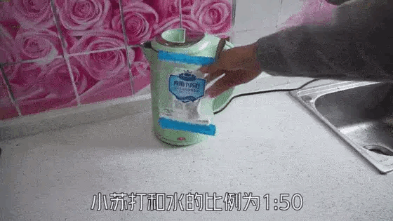 小蘇打除水垢:在用水壺?zé)畷r,放一小匙小蘇打(比例為1:50),燒沸幾分鐘,水垢即除。