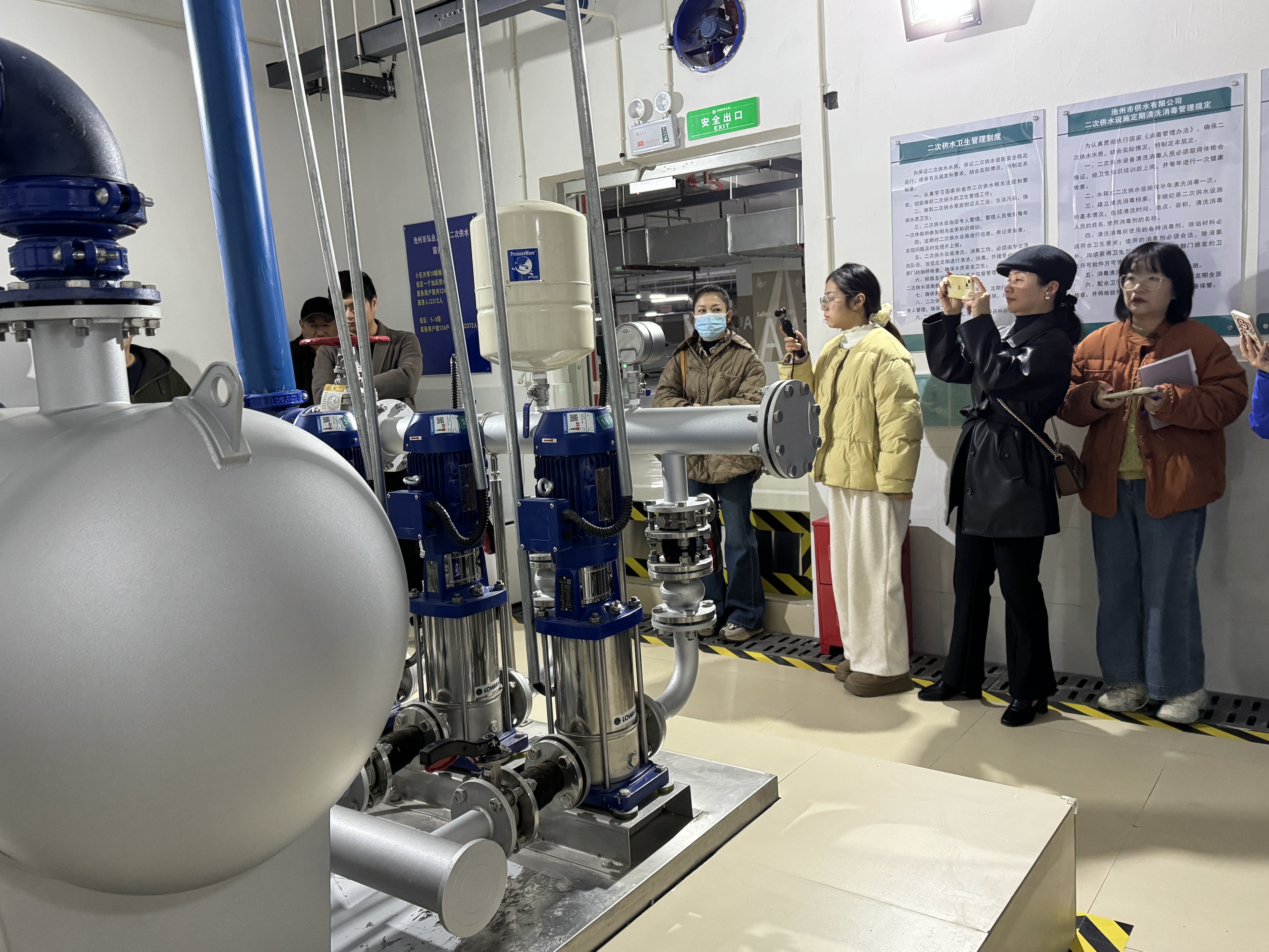 座談會(huì)前,用戶代表首先參觀了弘業(yè)上河琚小區(qū)二次供水泵站。該小區(qū)共有10幢樓,泵站設(shè)施先進(jìn),環(huán)境干凈整潔,服務(wù)用戶數(shù)124戶,服務(wù)人口372人。在現(xiàn)場(chǎng)工作人員的講解下,用戶代表對(duì)小區(qū)內(nèi)二次供水流程以及供水泵站的設(shè)備運(yùn)轉(zhuǎn)情況有了更加深入的認(rèn)識(shí),工作人員還詳細(xì)介紹了水廠的出廠水水壓、水質(zhì)以及自來水與日常生活生產(chǎn)相關(guān)的信息,并就客戶關(guān)心的問題進(jìn)行一一解答。