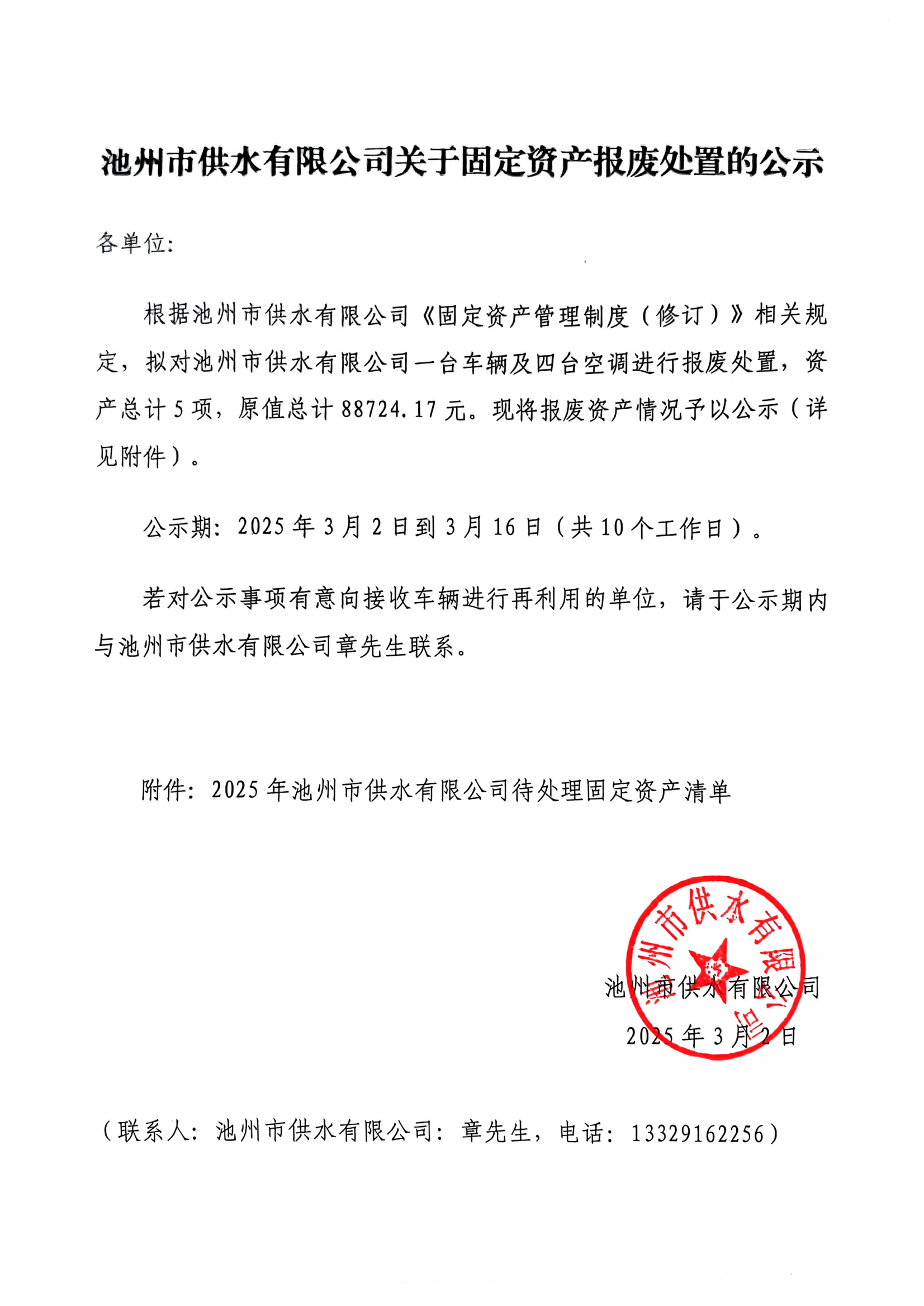 | 池州供水固定資產(chǎn)處置公示 | |