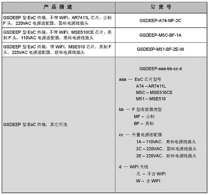 GSDEEP 配合同軸電纜以太網(wǎng)頭端設備,旨在通過有線電視用戶家中已有的同軸電 纜網(wǎng)絡在接收有線電視信號的同時可接入以太網(wǎng)數(shù)據(jù)信號。